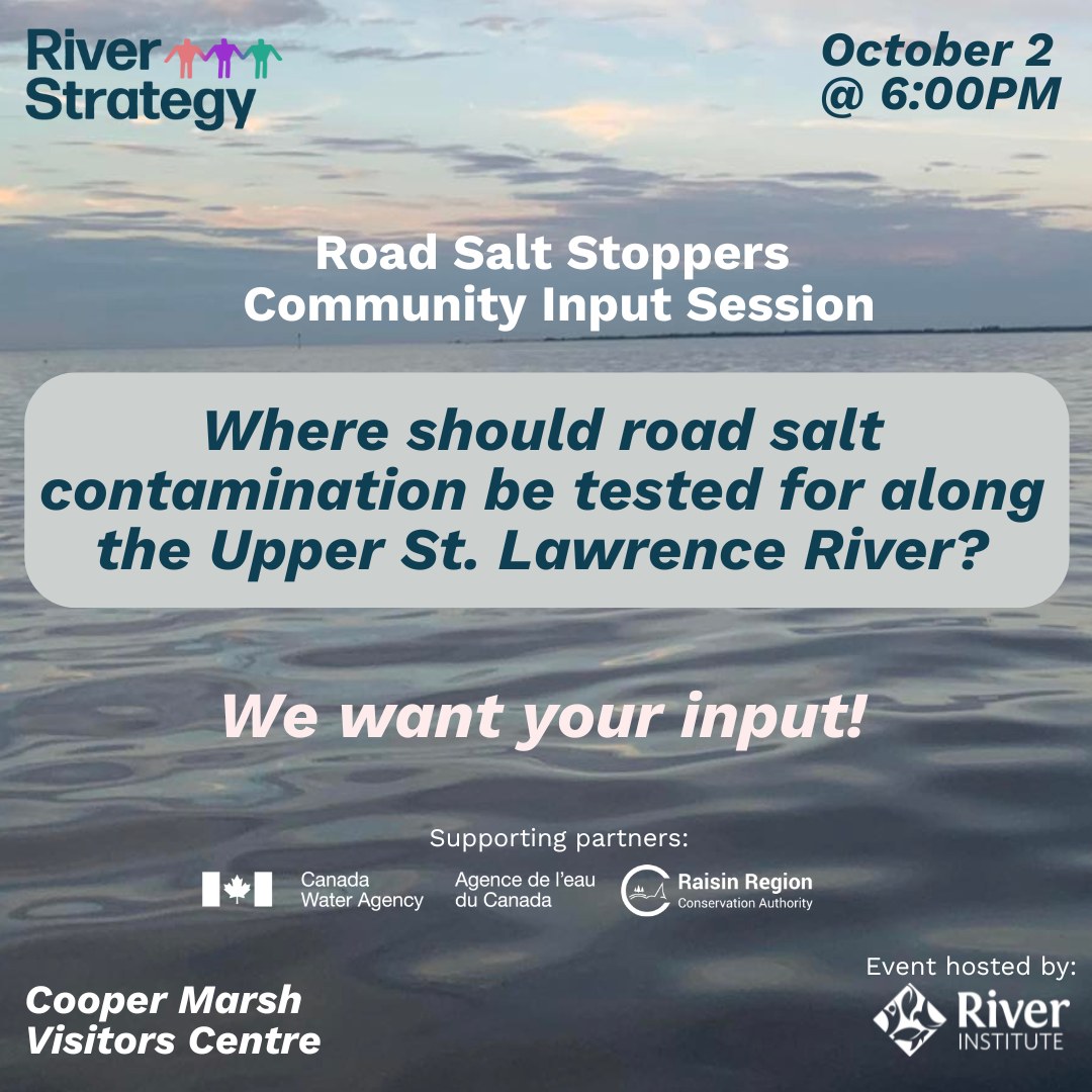 Join the River Institute at the Cooper Marsh Visitors Centre on Thursday, October 2nd to provide your input and get involved in a new road salt stoppers initiative.