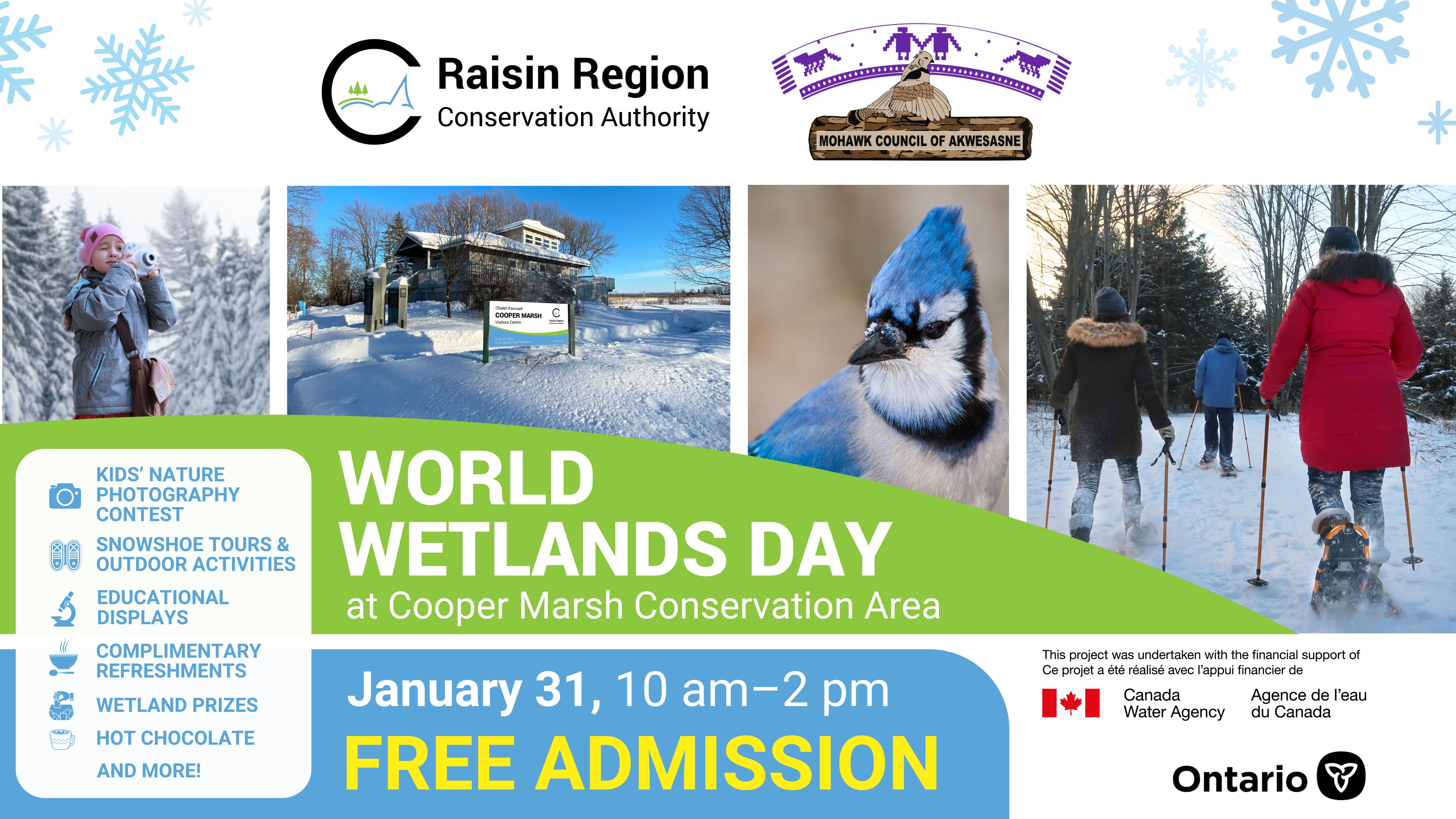 The Mohawk Council of Akwesasne’s (MCA) Environment Program and the Raisin Region Conservation Authority (RRCA) and their partners are once again inviting communities from both sides of the Kaniatarowanenneh – the St. Lawrence River – to join them for a celebration of World Wetlands Day on Saturday, January 31, 2026, from 10 am to 2 pm at the RRCA’s Cooper Marsh Conservation Area in South Glengarry.