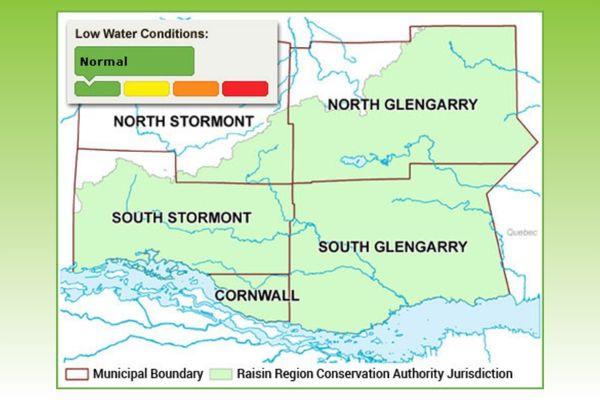 A Low Water status is declared when stream flows or precipitation falls below an expected amount. The RRCA monitors stream flows and precipitation data at gauges strategically placed throughout its watershed jurisdiction in the City of Cornwall and Townships of South Glengarry, North Glengarry, South Stormont, and North Stormont. Current conditions for the RRCA jurisdiction are now within the normal range. Recent direct engagement by the RRCA with many residents who reported dry wells also indicates that conditions for private well users have either returned to normal or are improving.