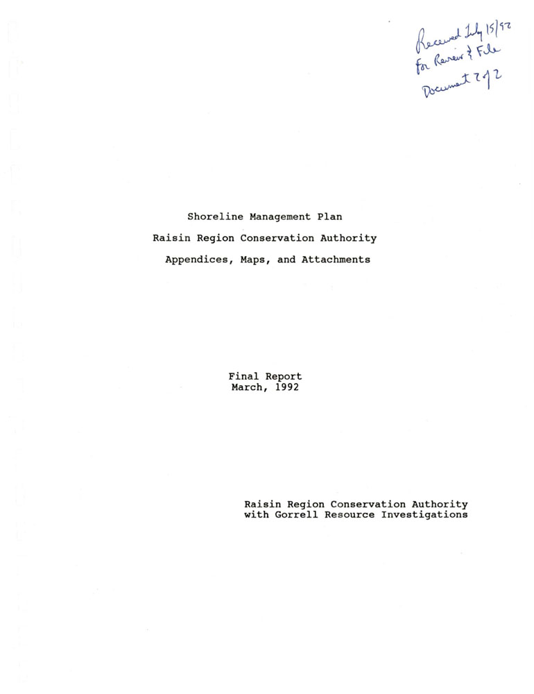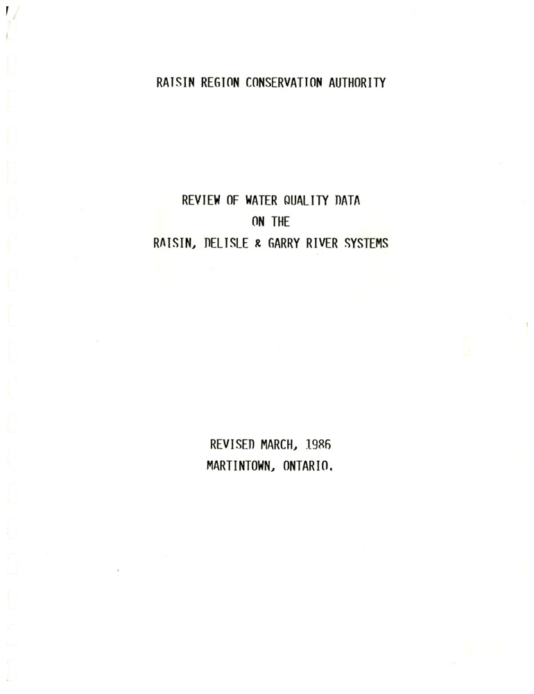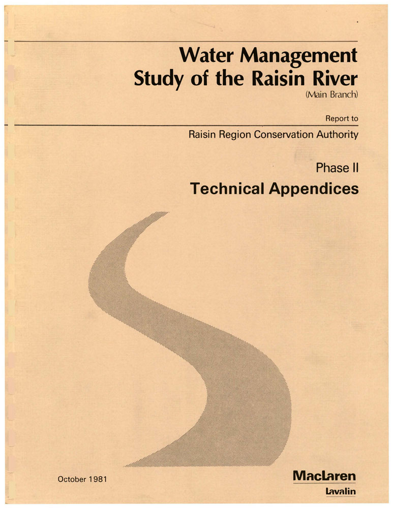 | 0005 | Water Management Study of the Raisin River (Main Branch)Phase II, Technical Appendices | MacLaren, Lavalin | 1981 | Cerlox |