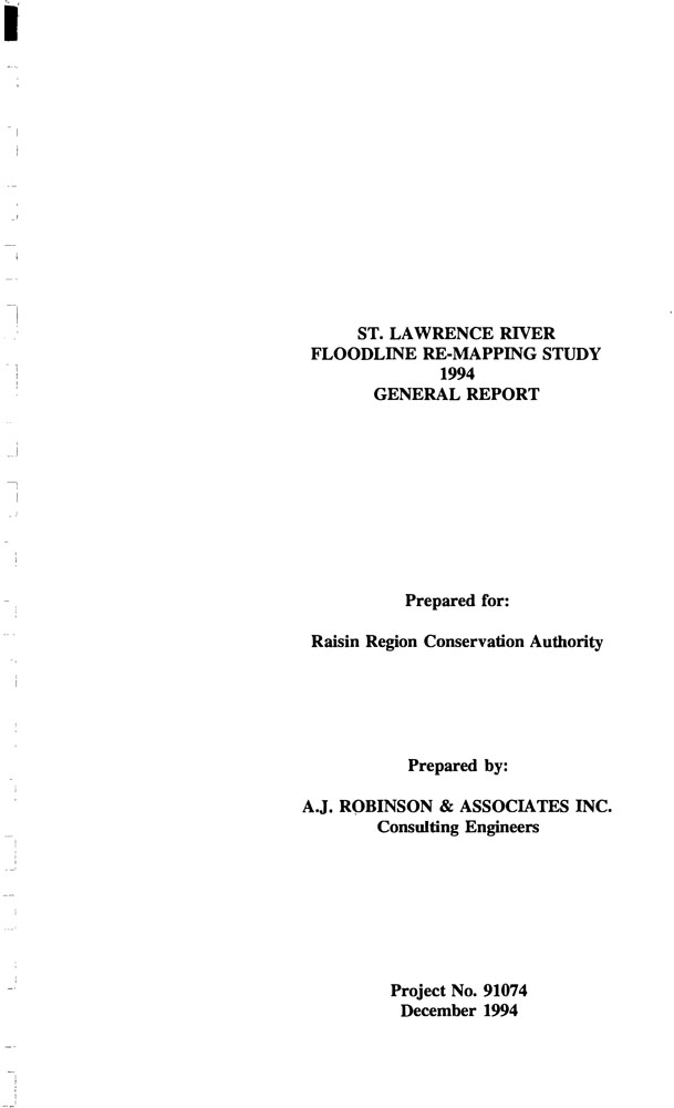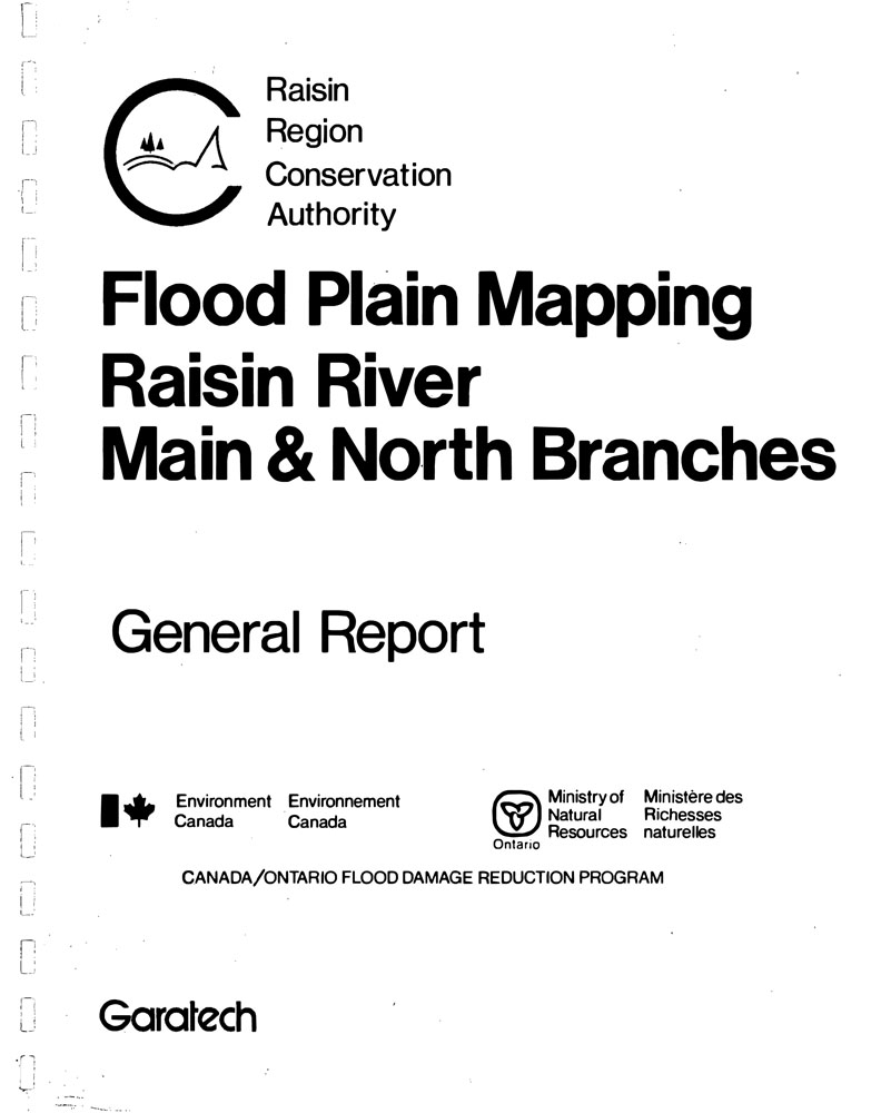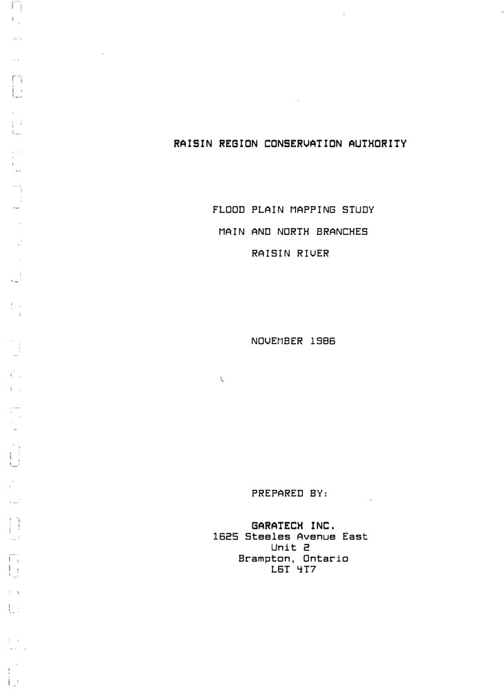 | 0011 | Flood Plain Mapping StudyMain and North Branches Raisin River, General Report | Garatech Inc | 1987 | Cerlox |