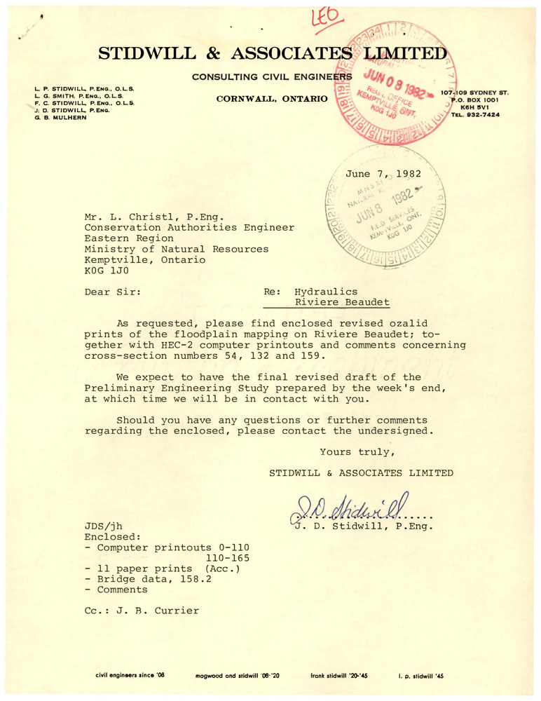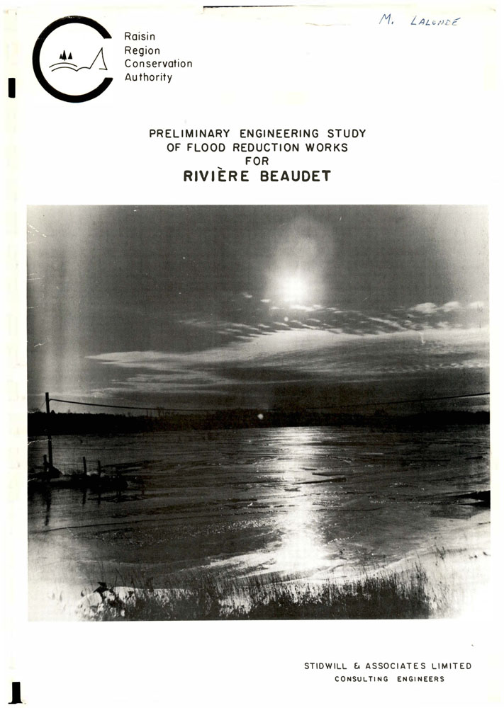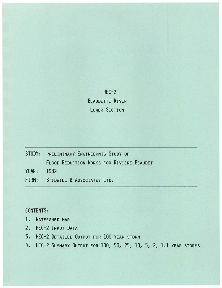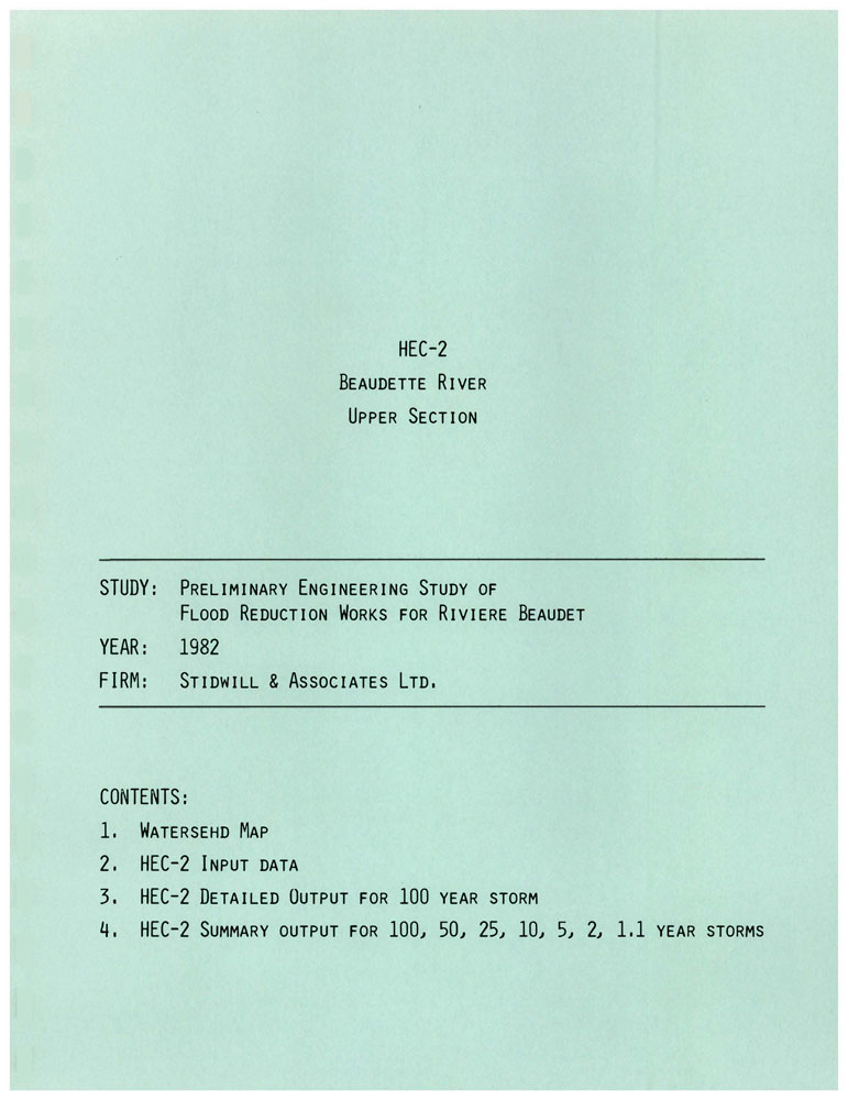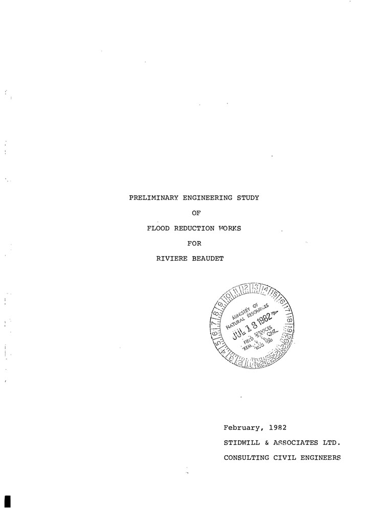 | 0009 | Preliminary Engineering Study of Flood Reduction Works for Riviere Beaudet | Stidwill and Associates Ltd | 1982 | Cerlox |