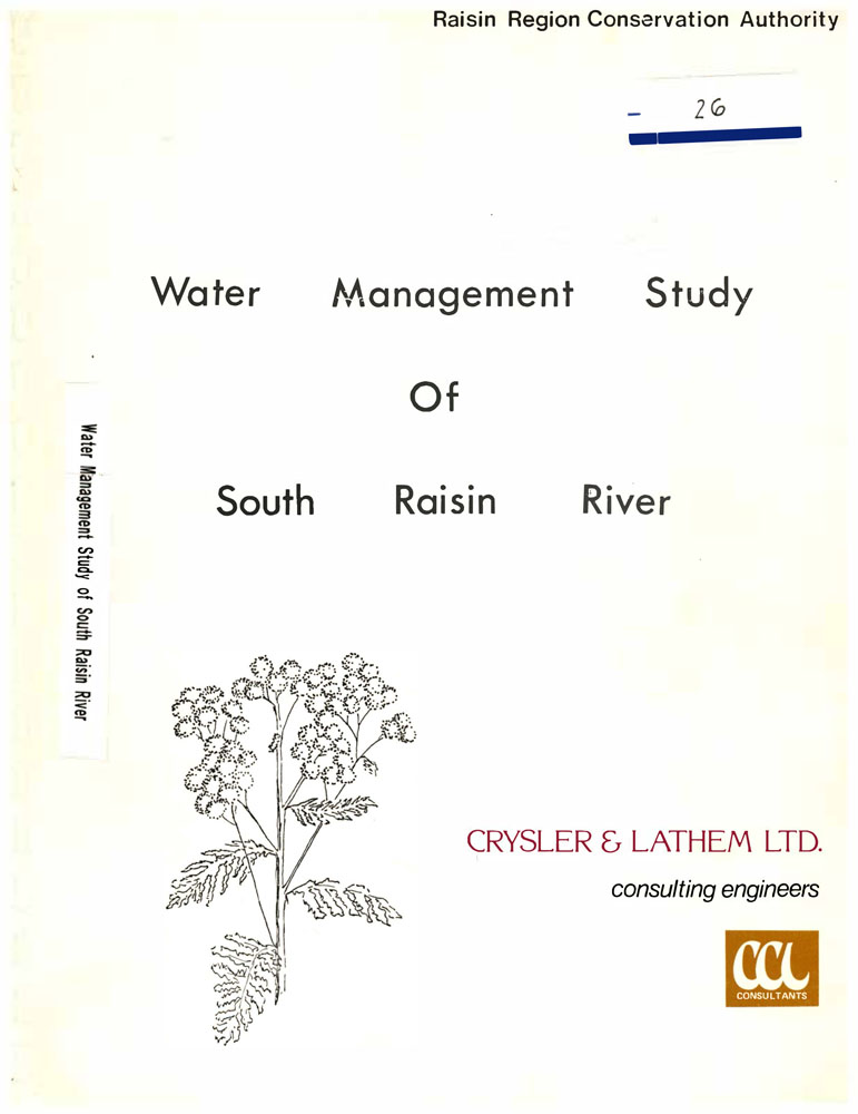 | 0026 | Water Management Study of South Raisin River | Crysler & Lathem Ltd | 1980 | Cerlox |
