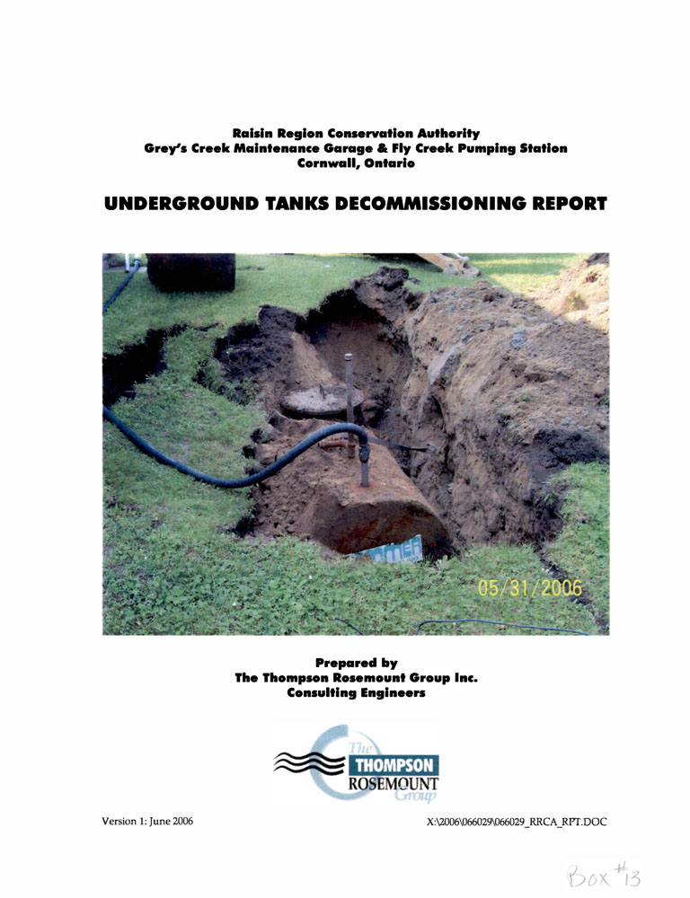 | 0037 | Underground Tanks Decommissioning ReportRRCA, Gray's Creek Maintenance Garage and Fly Creek Pumping Station | The Thompson Rosemount Group | 2006 | Cerlox |
