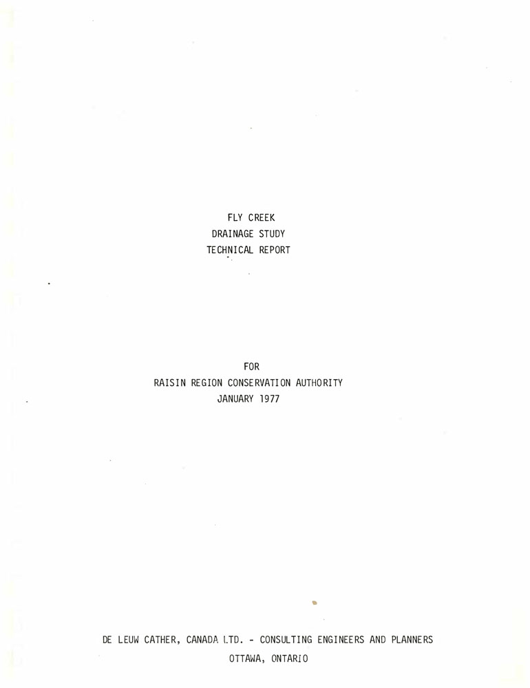 | 0039 | Fly CreekDrainage Study, Technical Report | De Leuw Cather, Canada Ltd | 1977 | Cerlox |