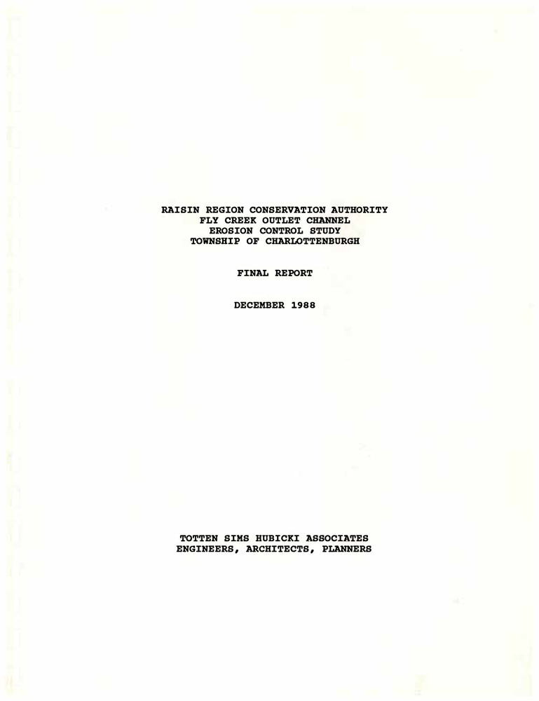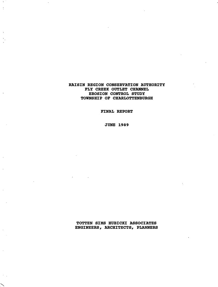 | 0041 | Fly Creek Outlet ChannelErosion Control Study, Township of Charlottenburgh, Final Report | Totten Sims Hubicki Associates | 1989 | Cerlox |