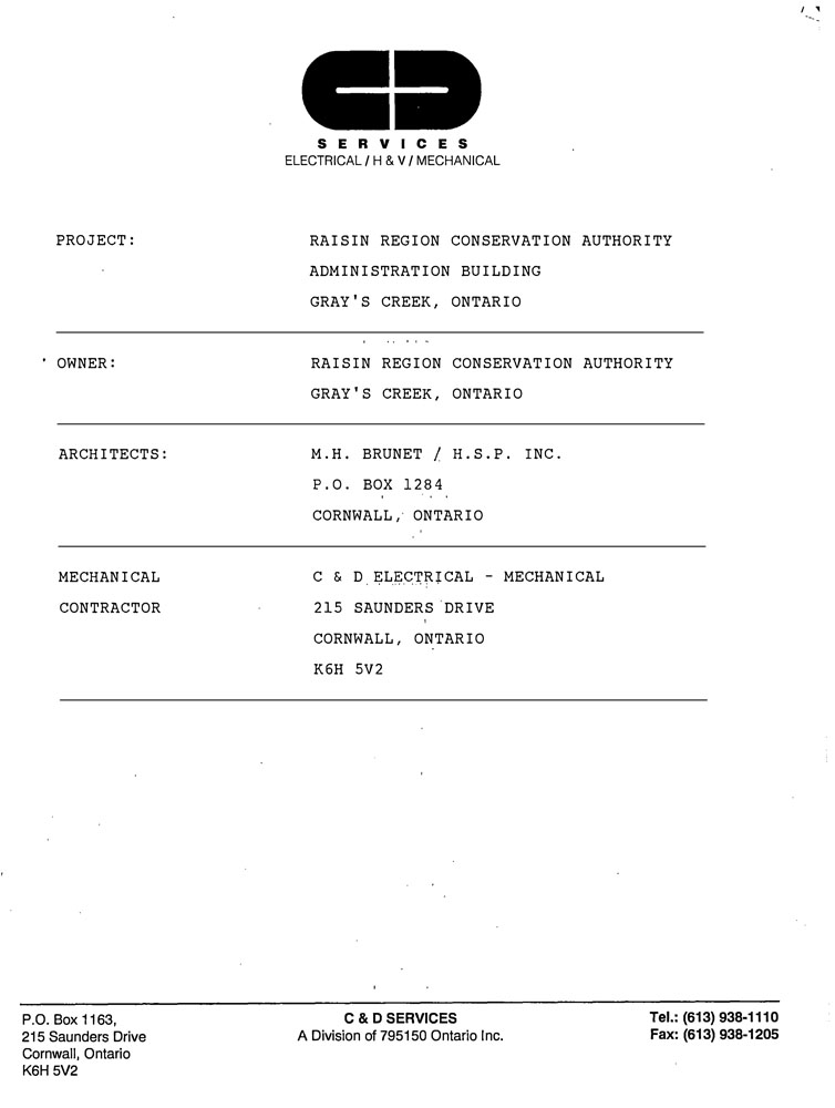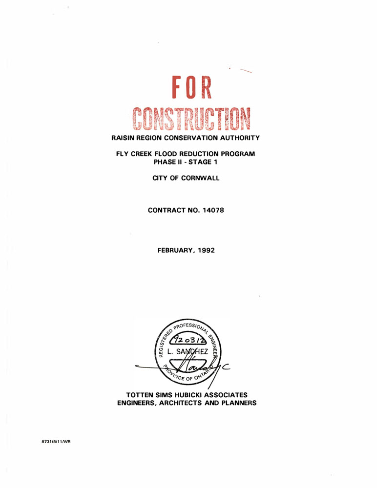 | 0050 | Fly Creek Flood Reduction ProgramPhase 2, Stage 5, City of Cornwall, Tender Set | Totten Sims Hubicki Associates | 1994 | Cerlox |