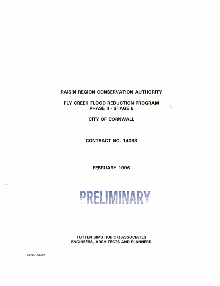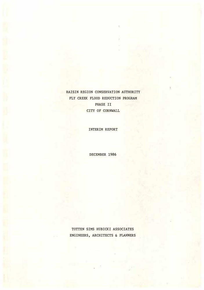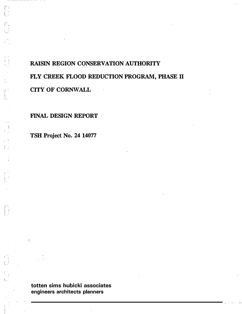 | 0058 | Fly Creek Flood Reduction ProgramPhase 2, City of Cornwall, Preliminary Design Report, TSH Project No. 24 14077 | Totten Sims Hubicki Associates | 1991 | Cerlox |