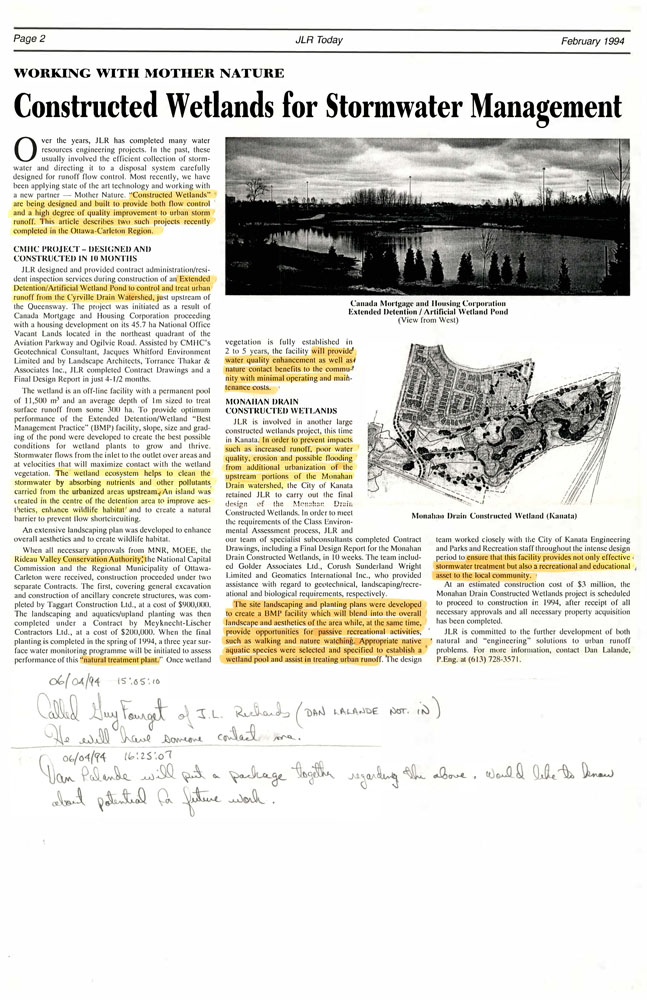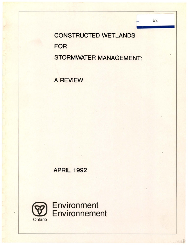 | 0062 | Constructed Wetlands for Stormwater ManagementA Review, Prepared for: Water Resources Branch Ontario Ministry of the Environment, The Metropolitan Toronto and Region Conservation Authority | Mark E. Taylor and Associates | 1992 | Cerlox |