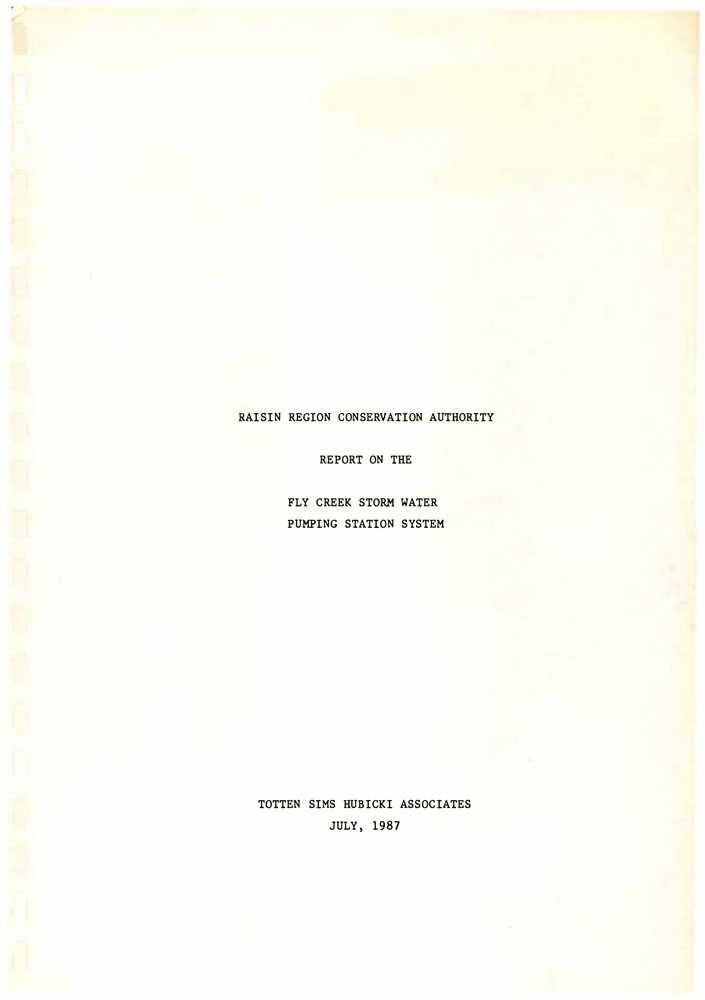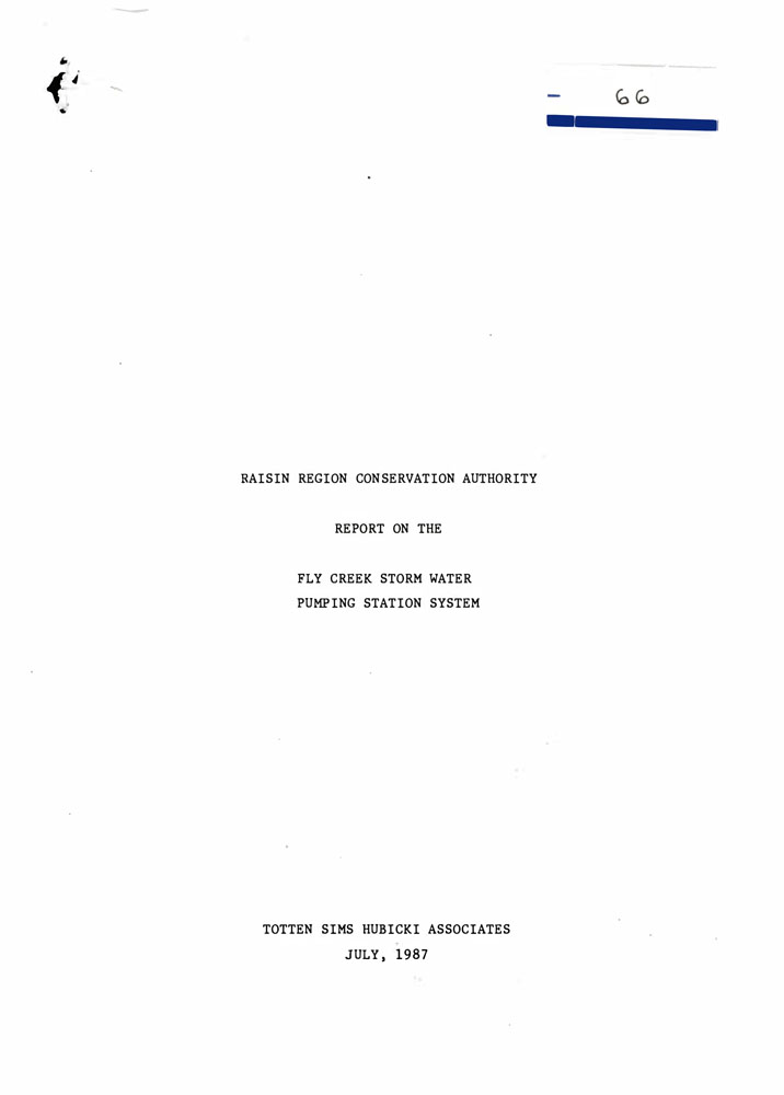 | 0066 | Report on the Fly Creek Storm Water Pumping Station System | Totten Sims Hubicki Associates | 1987 | Stapled (replaced with clip) |