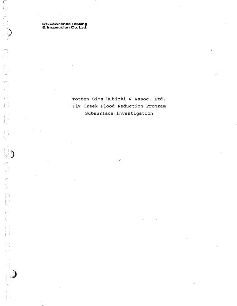 | 0067 | Fly Creek Flood Reduction ProgramSubsurface Investigation | Totten Sims Hubicki Associates, St. Lawrence Testing and Inspection Co. Ltd. | 1991 | Cerlox |