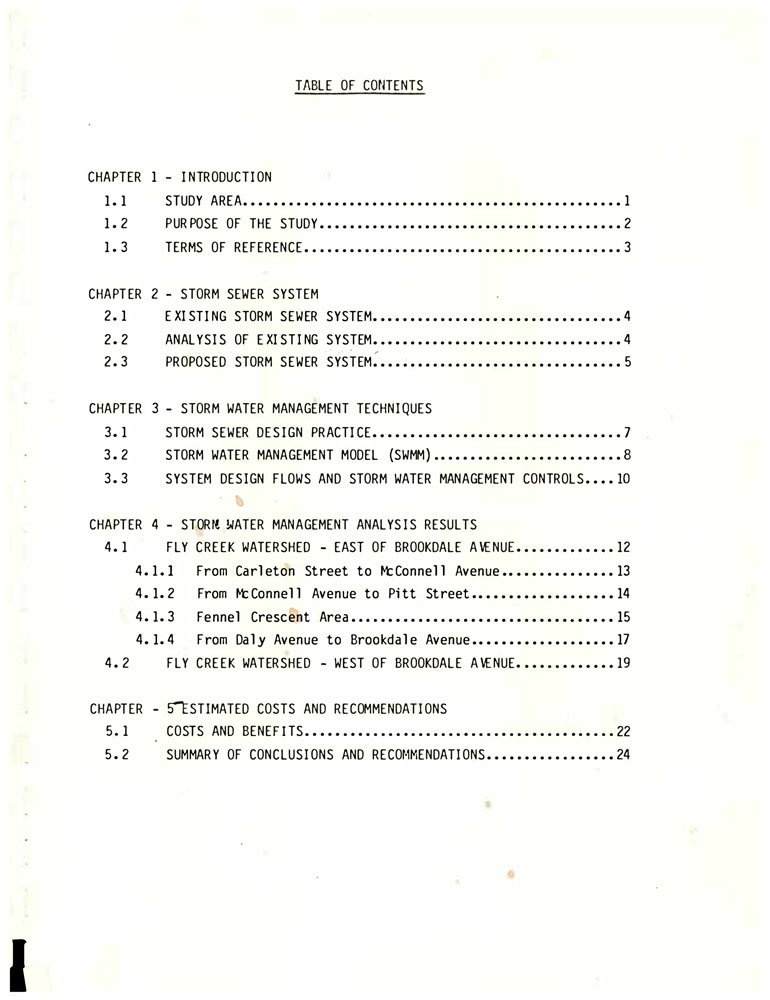 | 0038 | Fly CreekDrainage Study, Final Report | De Leuw Cather, Canada Ltd | 1977 | Cerlox. Attachments: 6 maps |