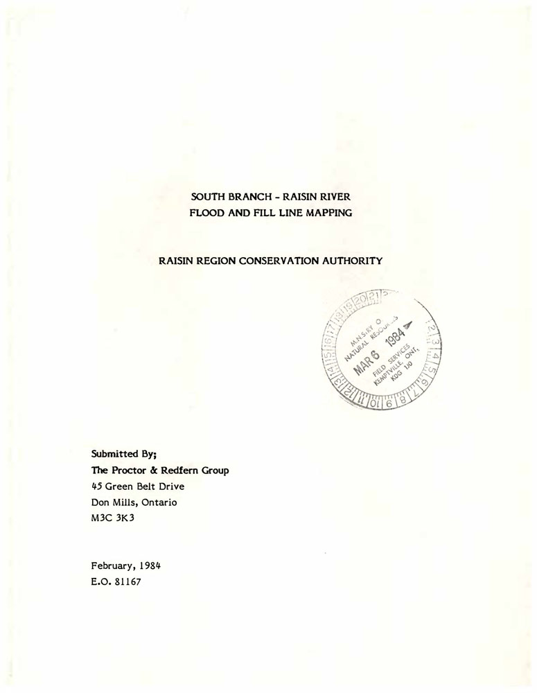 | 0017 | South Branch - Raisin RiverFlood and Fill Line Mapping | The Proctor and Redfern Group | 1984 | Cerlox |