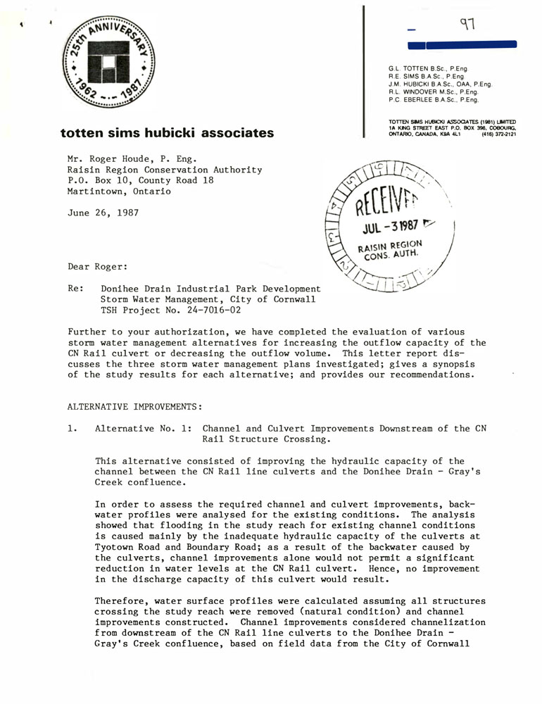 | 0097 | Donihee Drain Industrial Park DevelopmentStorm Water Management, City of Cornwall | Totten Sims Hubicki Associates | 1987 | Cerlox |