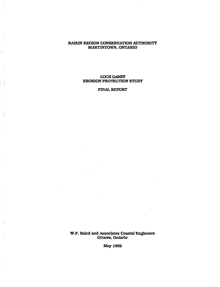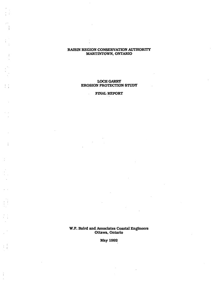 | 0277 | Loch Garry Erosion Protection StudyFinal Report | W.F. Baird and Associates Coastal Engineers | 1992 | Cerlox |