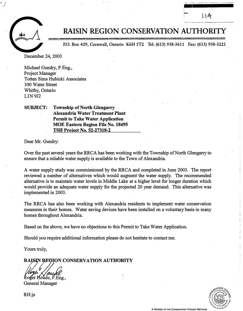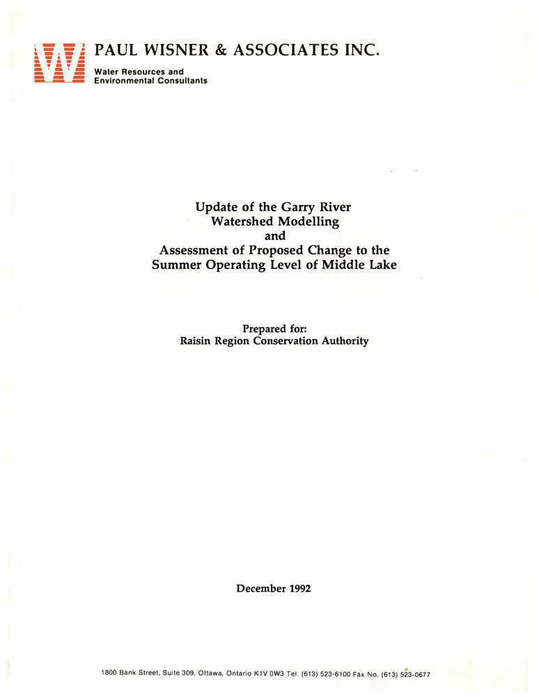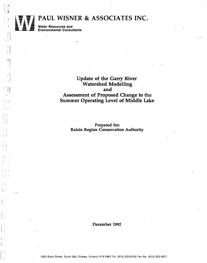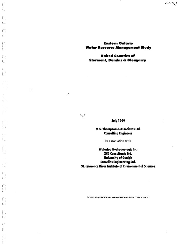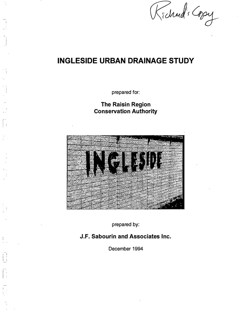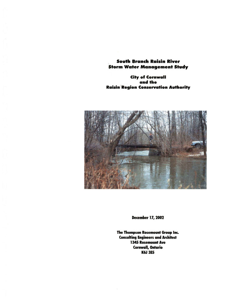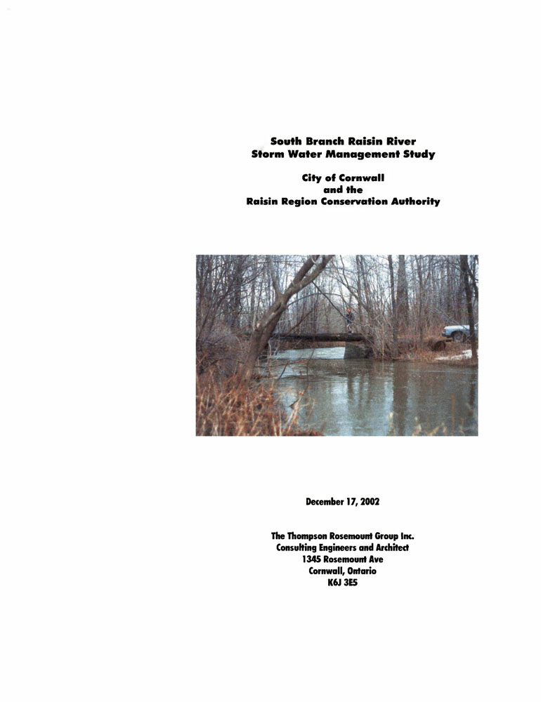 | 0027 | South Branch Raisin RiverStorm Water Management Study, City of Cornwall and the Raisin Region Conservation Authority | M.S. Thompson and Associates Ltd | 2000 | Cerlox. Attachments: 2 maps |