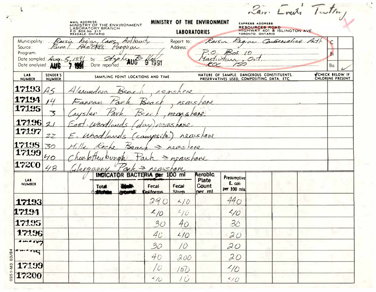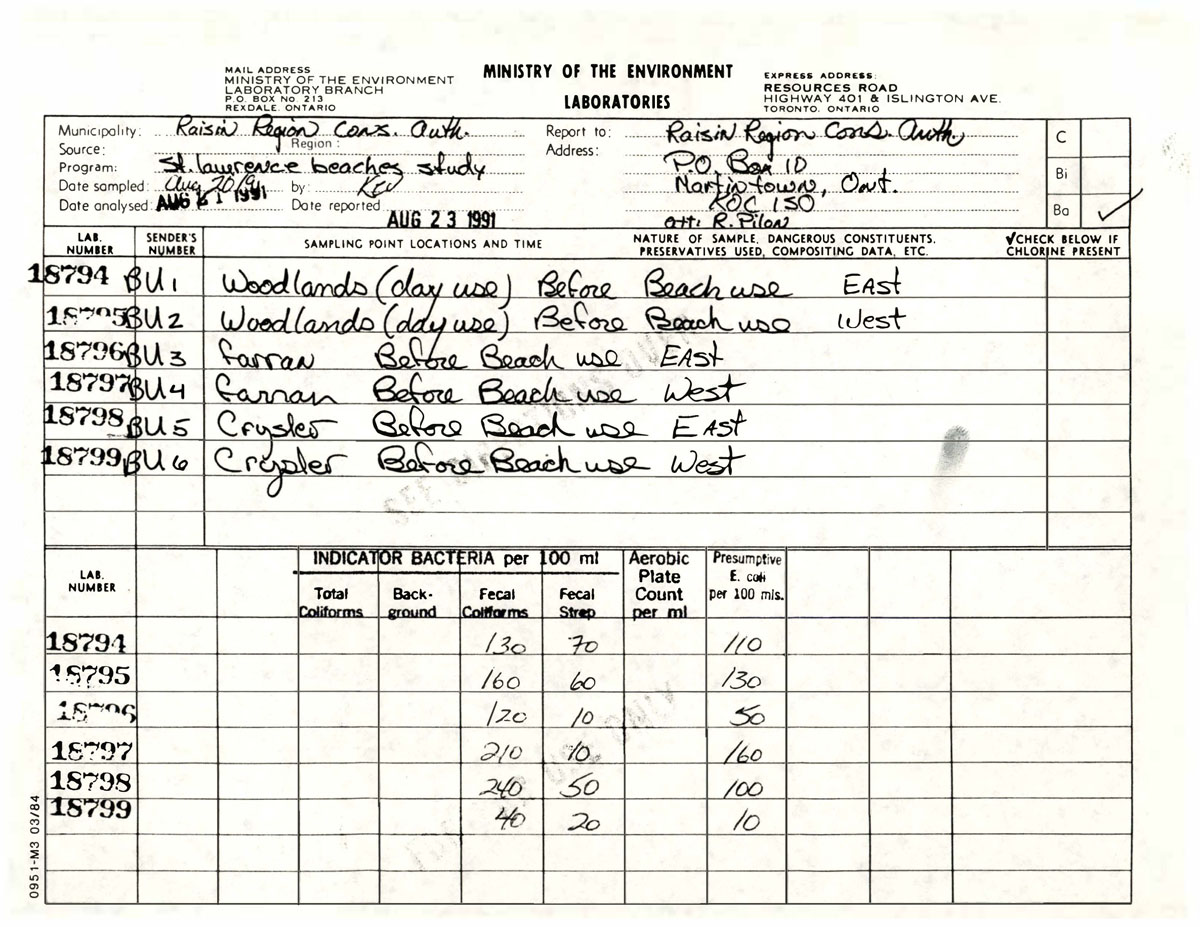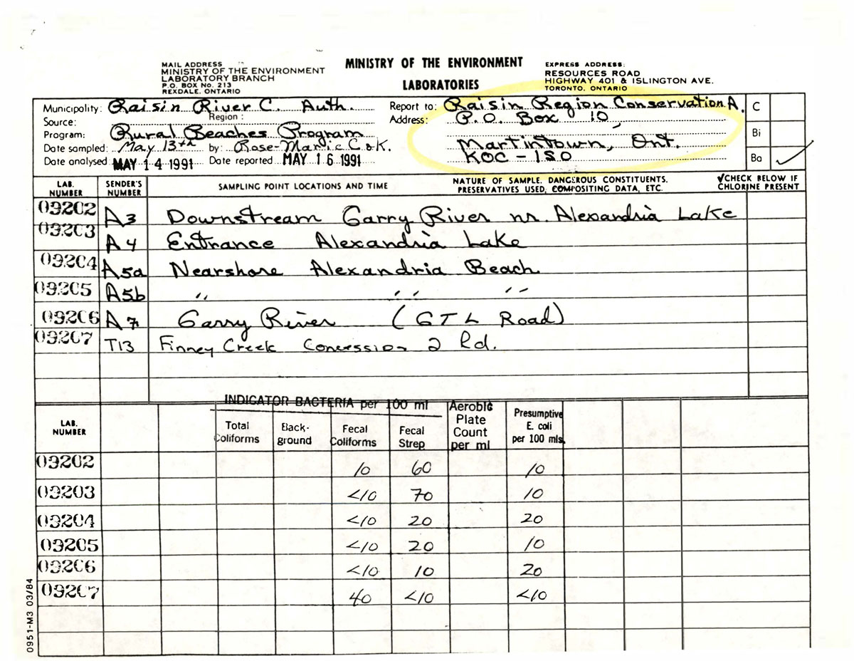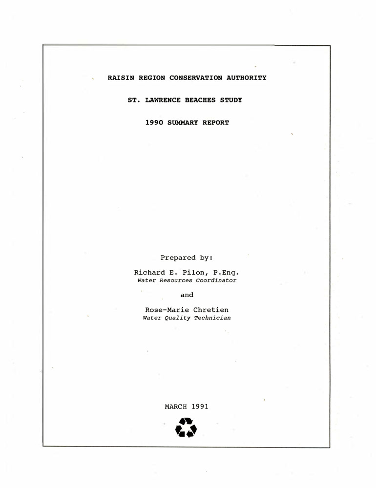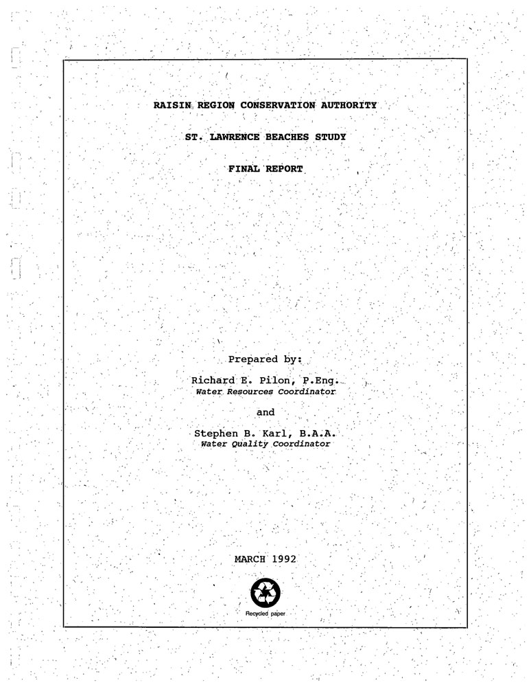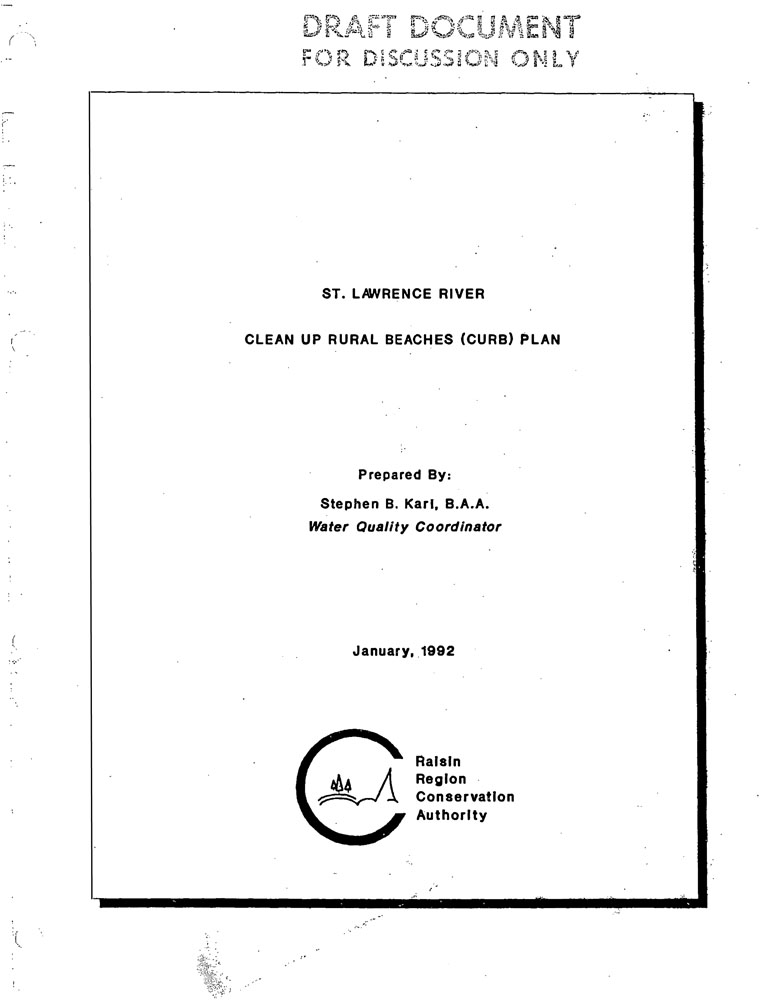 | 0006 | Clean Up Rural Beachs (Curb) PlanFor the Finney Creek and Raisin River Watersheds, St. Lawrence River Clean Up Rural Beaches (Curb) Plan | Stephen B. Karl, B.A.A | 1992 | Cerlox |