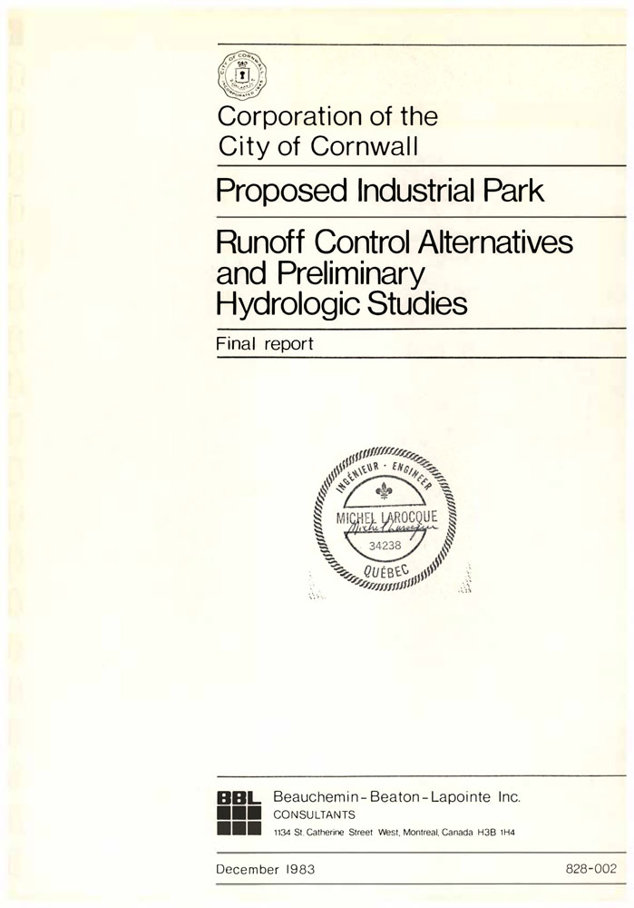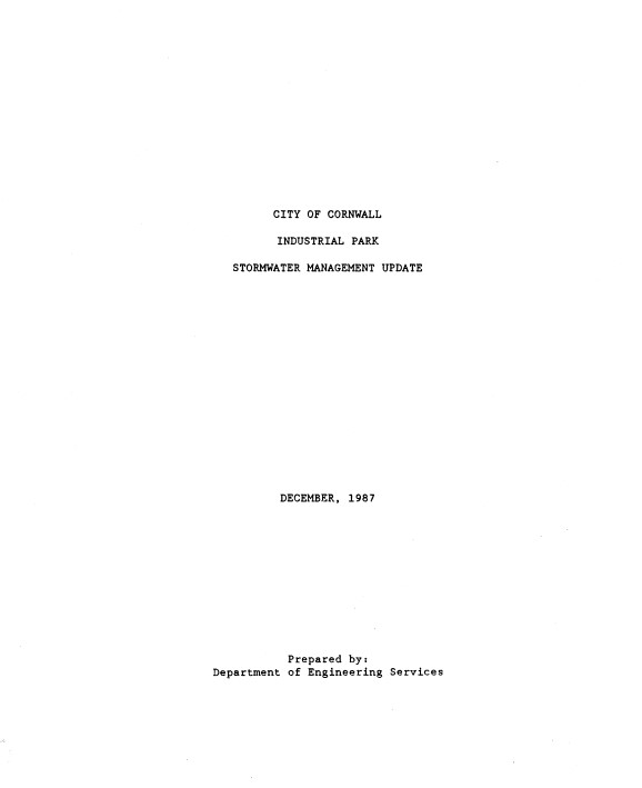 | 0353 | City of Cornwall Industrial ParkStormwater Management Update, Donihee Drain | City of Cornwall, Engineering Services | 1987 | SCAN |