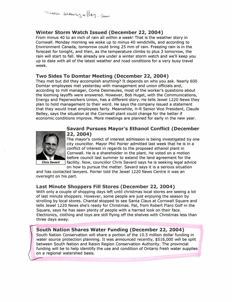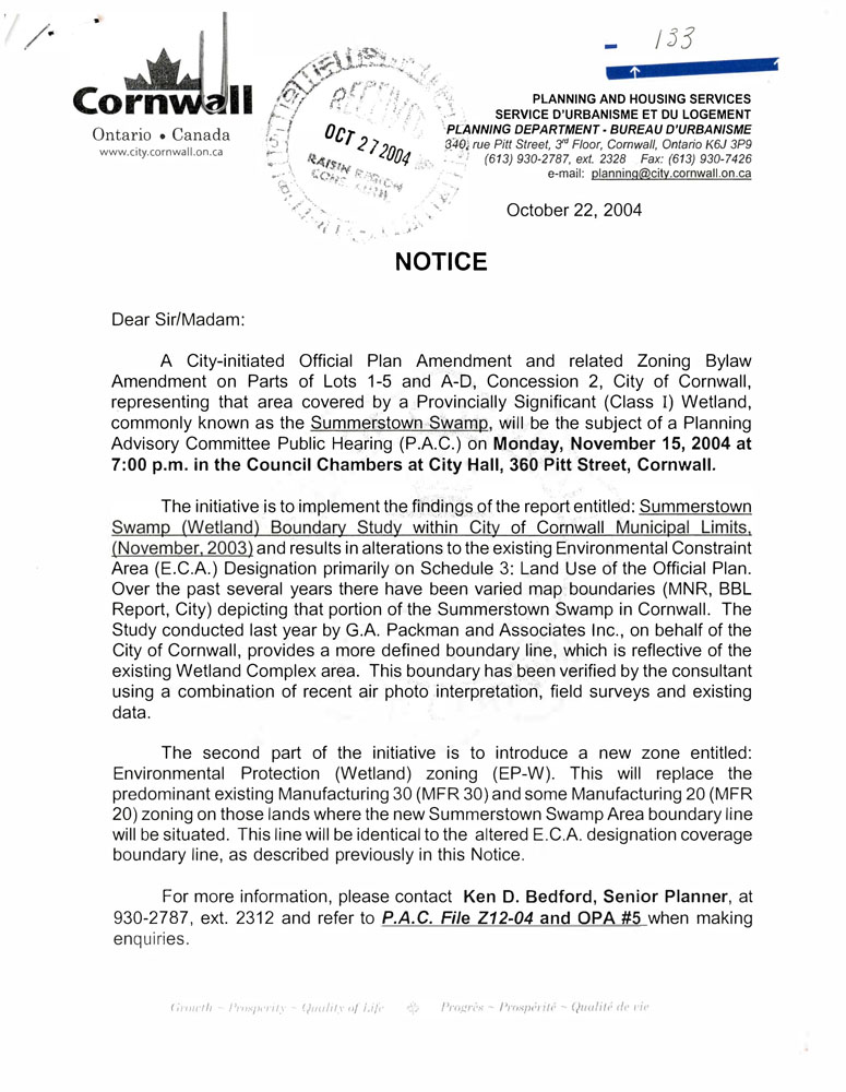 | 0354 | City of Cornwall Industrial ParkStormwater Update 2010, Donihee Drain | City of Cornwall, Engineering Services | 2010 | SCAN |