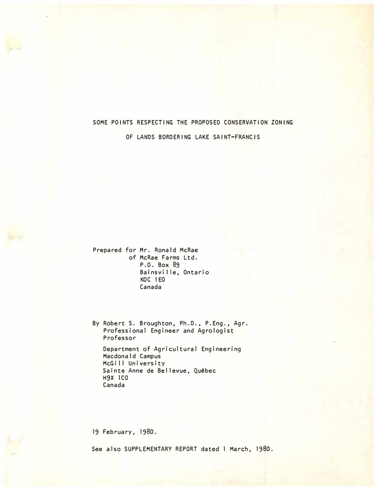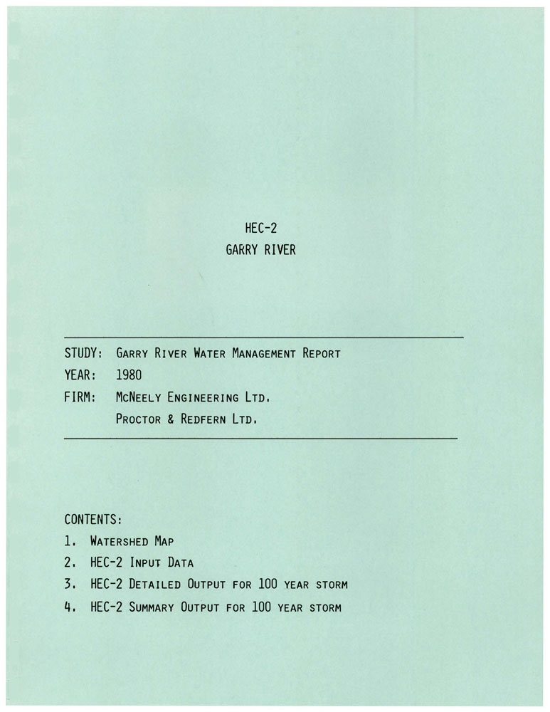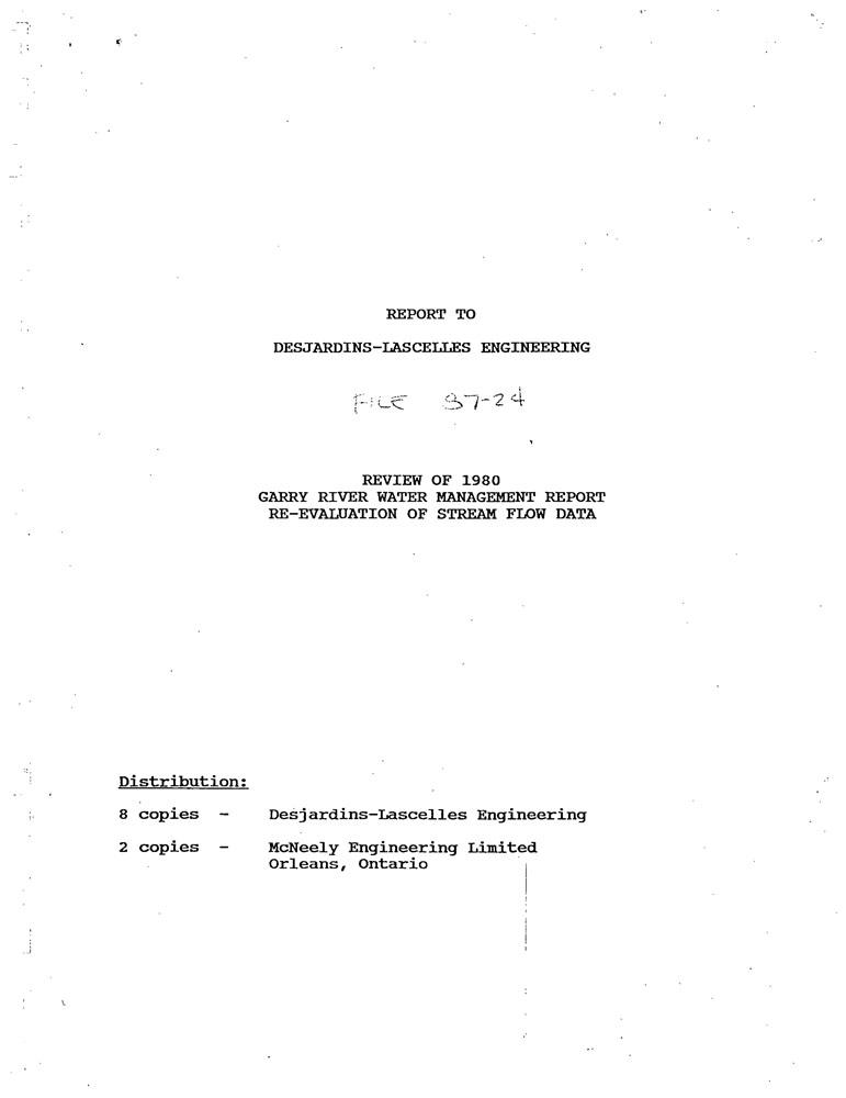 | 0274 | Report to Desjardins-Lascelles EngineeringReview of 1980, Garry River Water Management Report, Re-Evaluation of Stream Flow Data | McNeely Engineering Limited, Eric Tousignant , Gerry Lalonde | 1989 | Cerlox |
