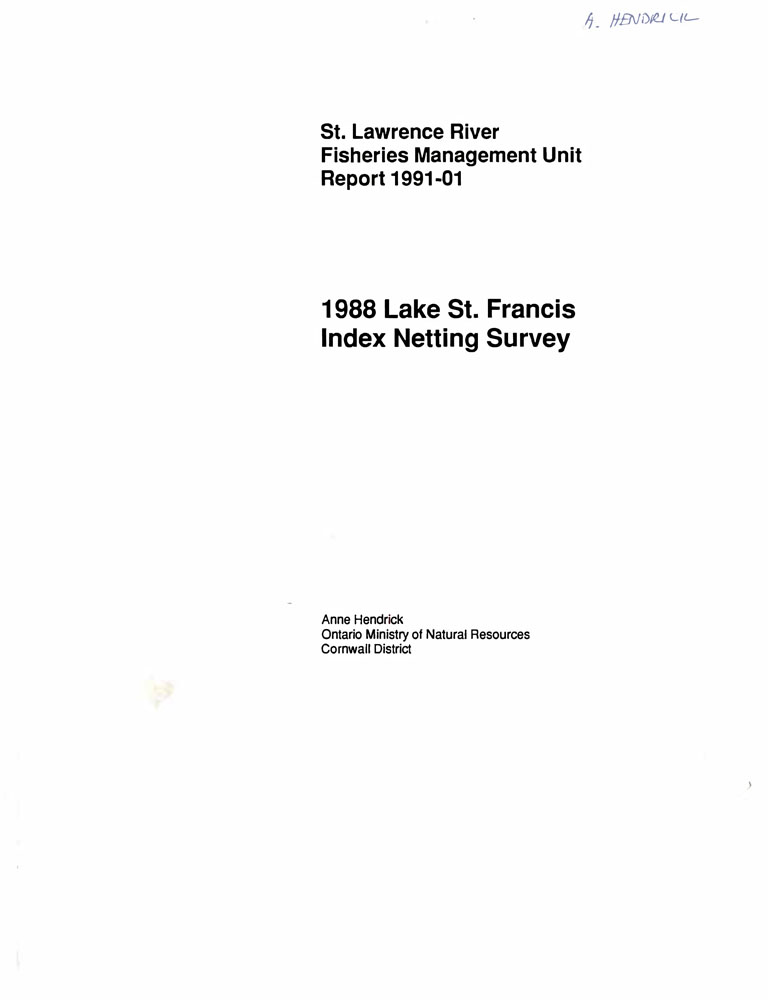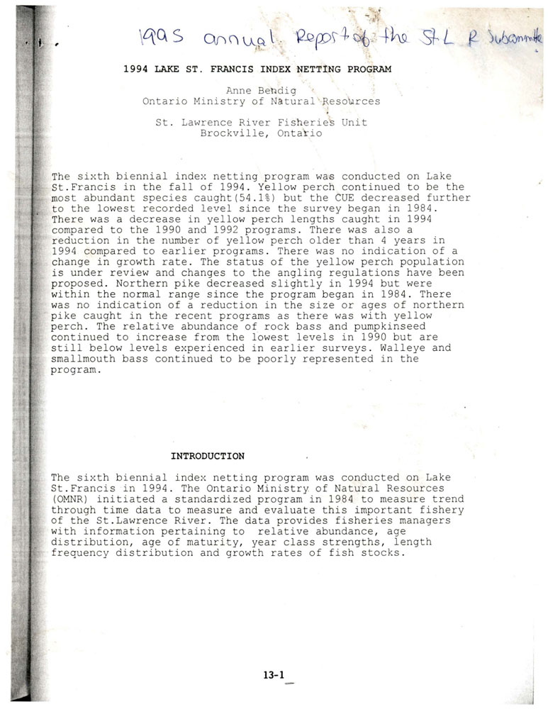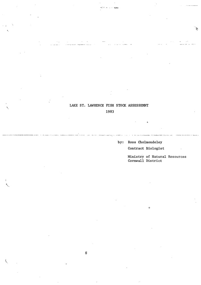 | 0313 | Lake St. Lawrence FishStock Assessment 1983 | Ross Cholmondeley | 1983 | Duotang |
