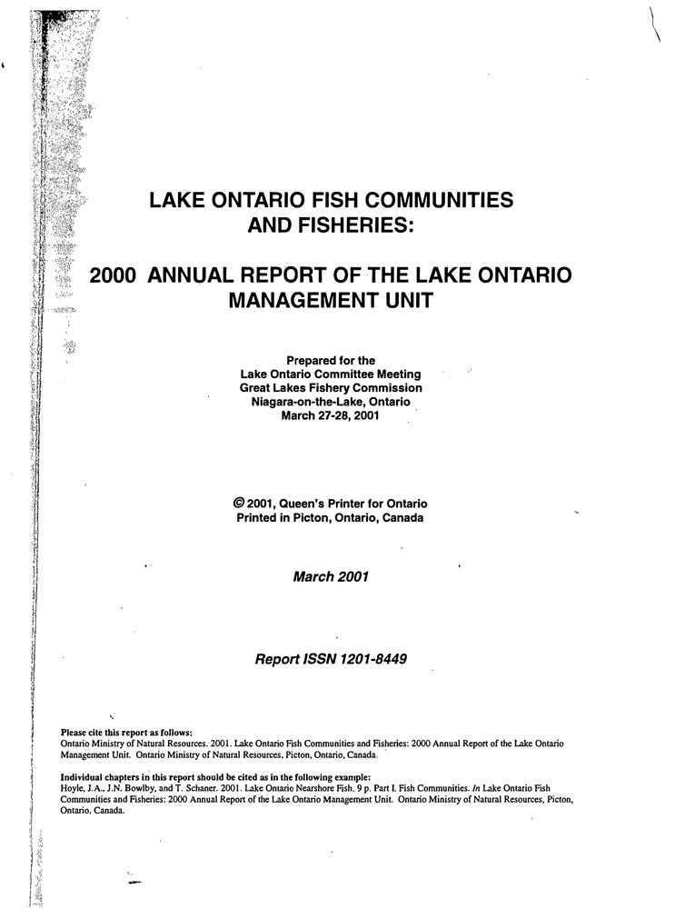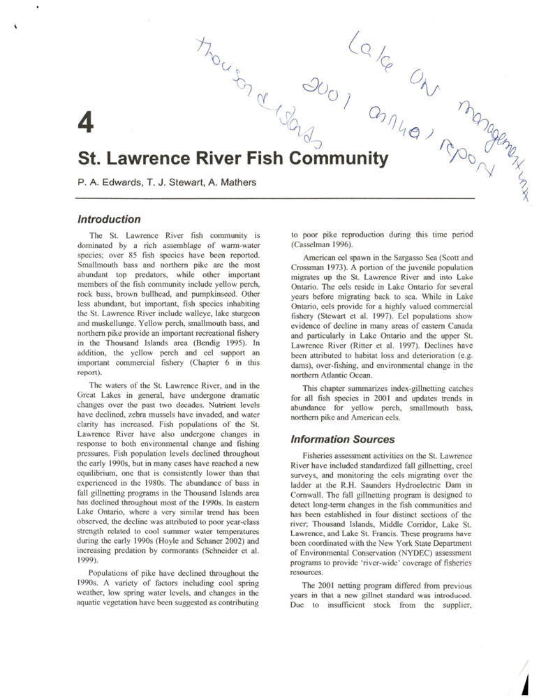 | 0296 | St. Lawrence River Fish Community | P. A. Edwards, T. J Stewart , A. Mathers | 2001 | Stapled |