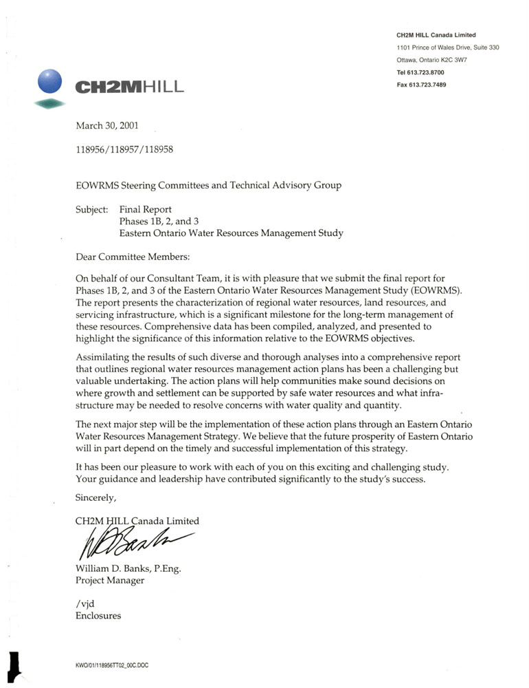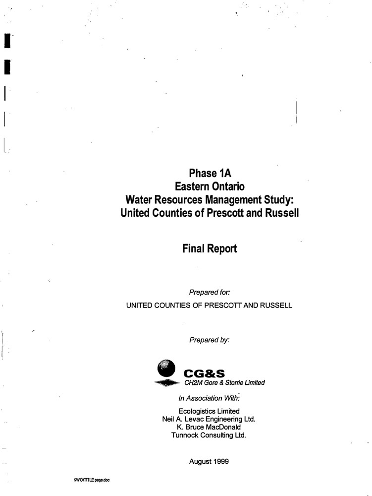 | 0284 | Eastern Ontario Water Resources Management StudyFinal Report | CH2MHILL | 2001 | Cerlox |