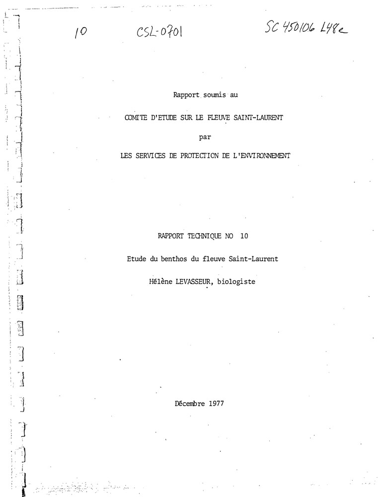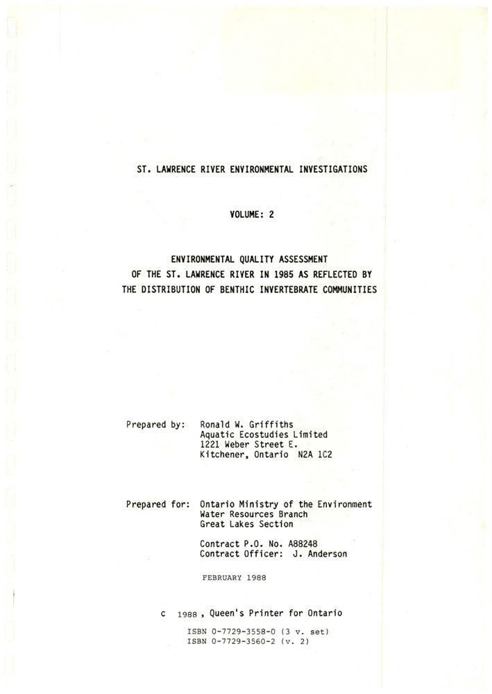 | 0339 | St. Lawrence River Environmental Investigations: Volume 2Environmental Quality Assessment of the St. Lawrence River in 1985, As Reflected by the Distribution of Benthic Invertebrate Communities | Ronald W. Griffiths Aquatic Ecostudies Limited | 1988 | Cerlox |