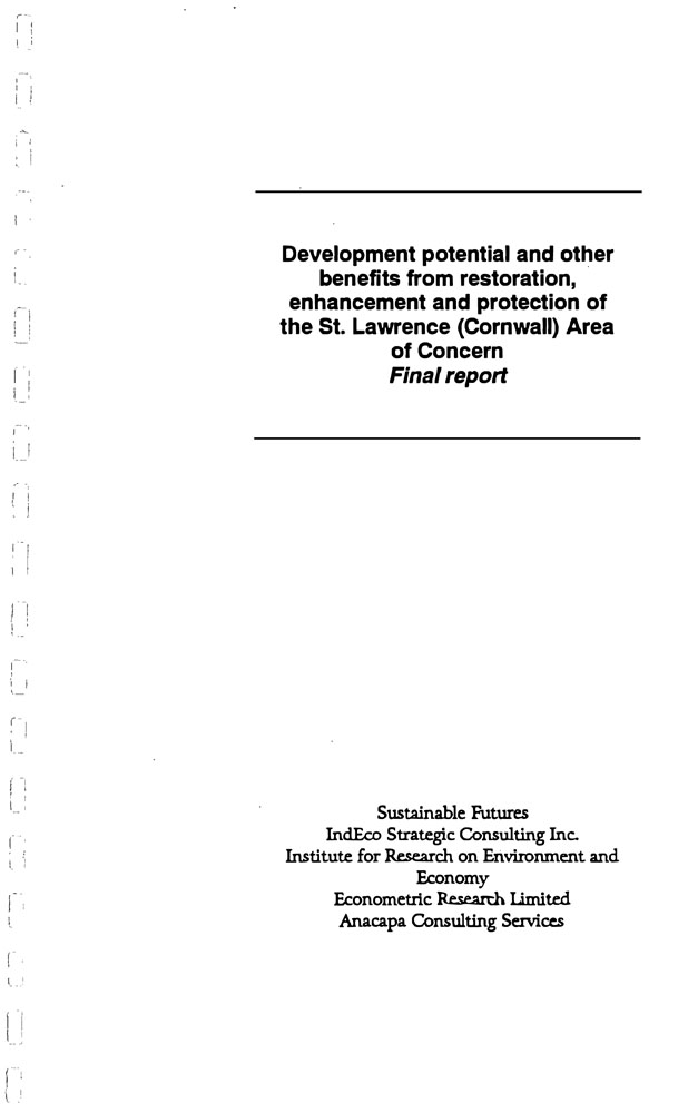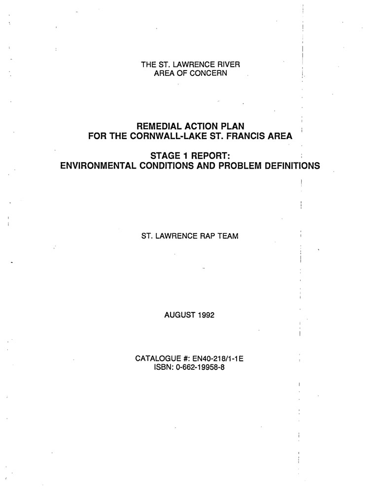 | 0322 | Environmental Conditions and Problem DefinitionsStage 1, Remedial Action Plan for the Cornwall-Lake St. Francis Area | St. Lawrence RAP Team | 1992 | Cerlox |