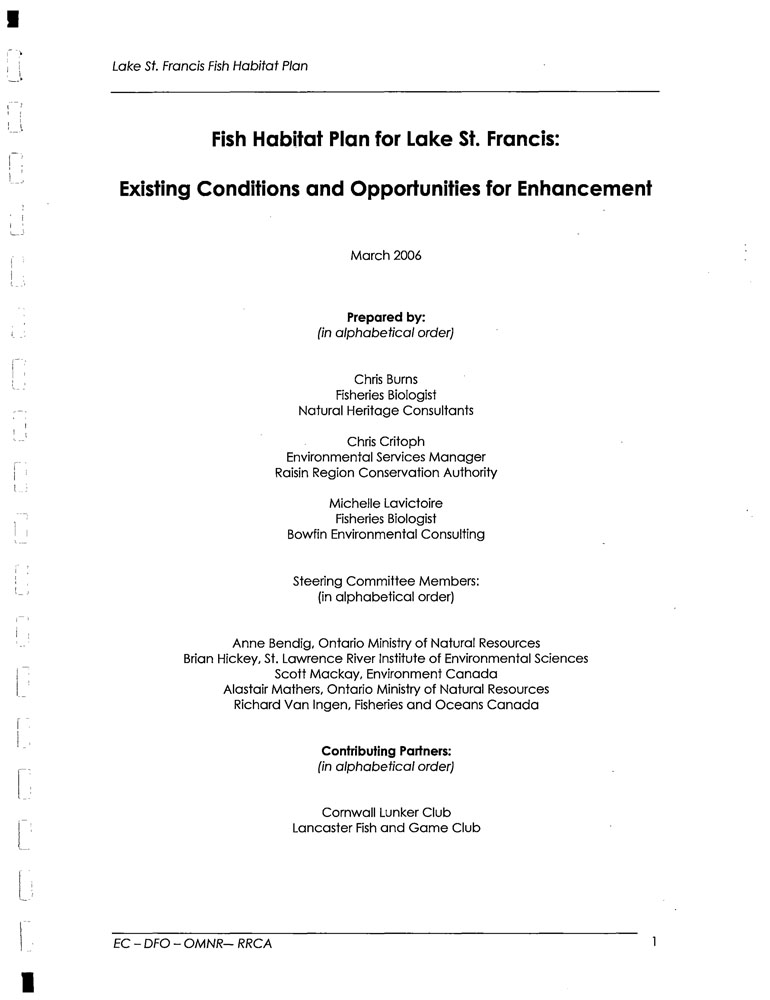 | 0342 | Lake St. Francis Fisheries Management PlanBackground Report | 2005 | Cerlox | |