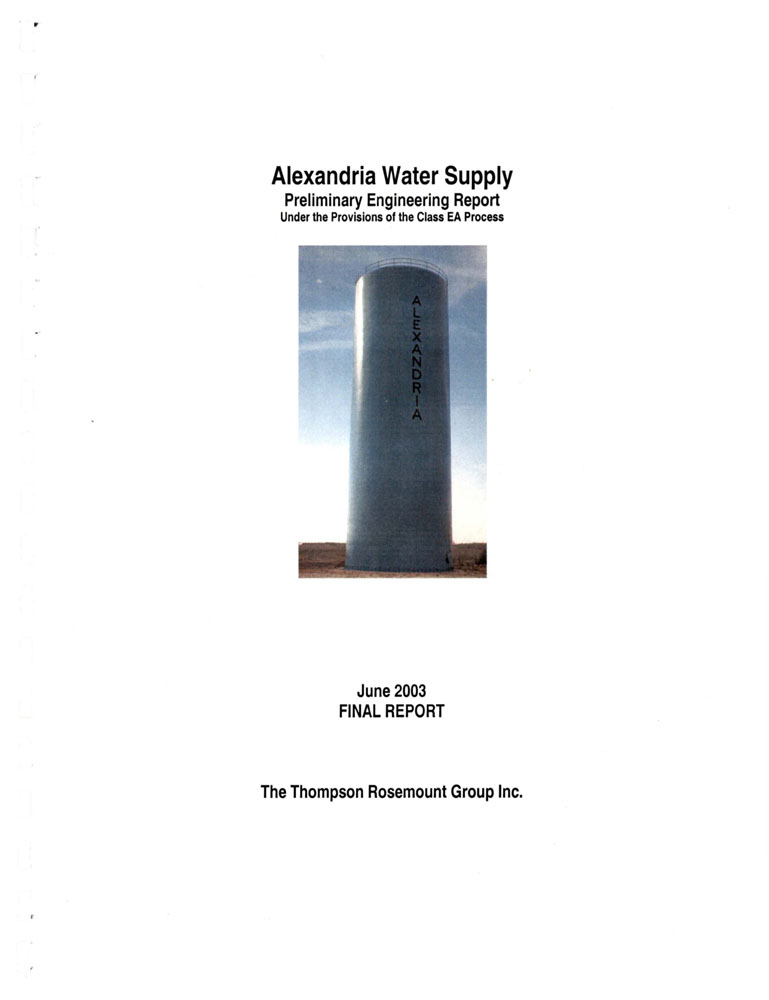 | 0278 | Town of Alexandria Emergency Contingency PlanWater Supply | RRCA | 1998 | Cerlox |