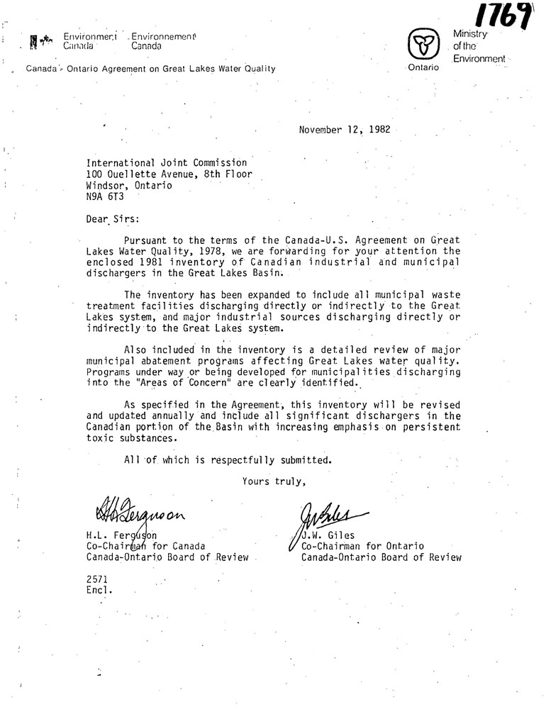 | 0255 | Inventory of Major Industrial Point Source Dischargers in the Great Lakes BasinCanada - 1982 | Canada - Ontario Review Board, Environment Canada, Ministry of the Environment | 1984 | Cerlox |