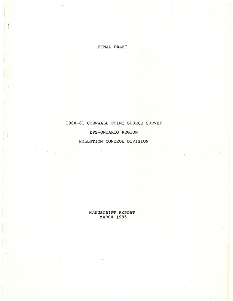 | 0260 | 1980-81 Cornwall Point Source SurveyEPS-Ontario Region, Pollution Control Division, Final Draft | Environmental Protection Service - Ontario Region | 1985 | Cerlox |