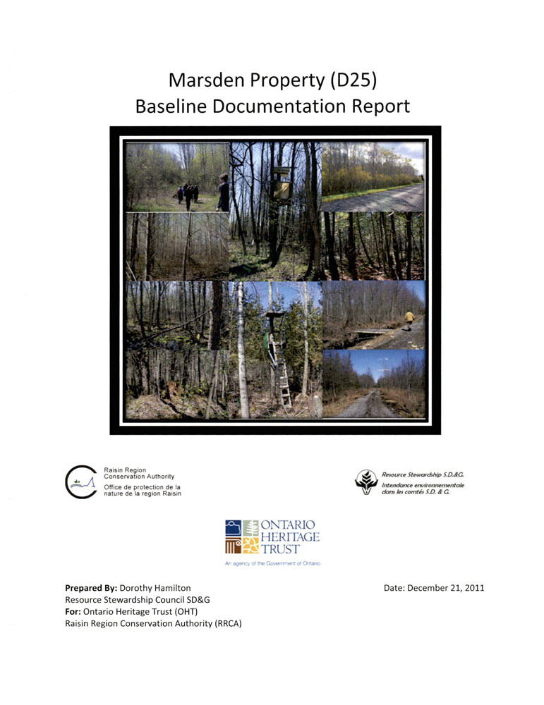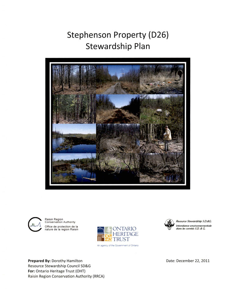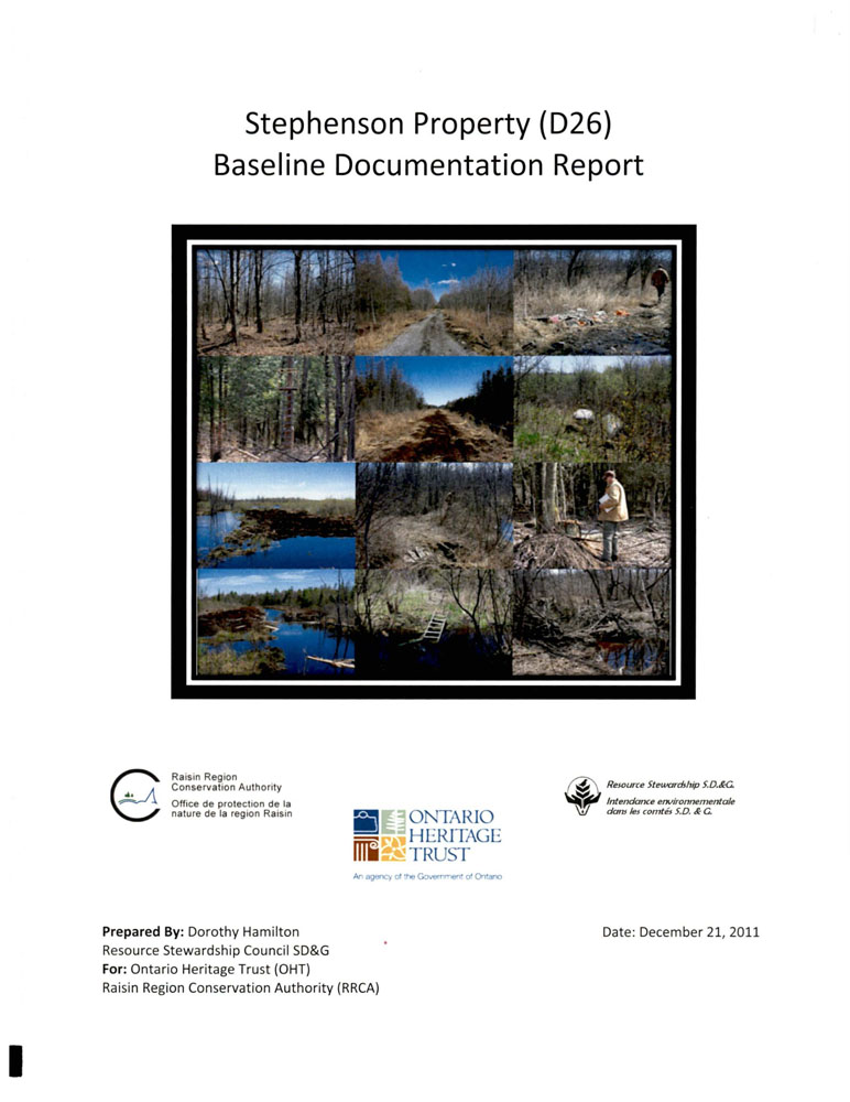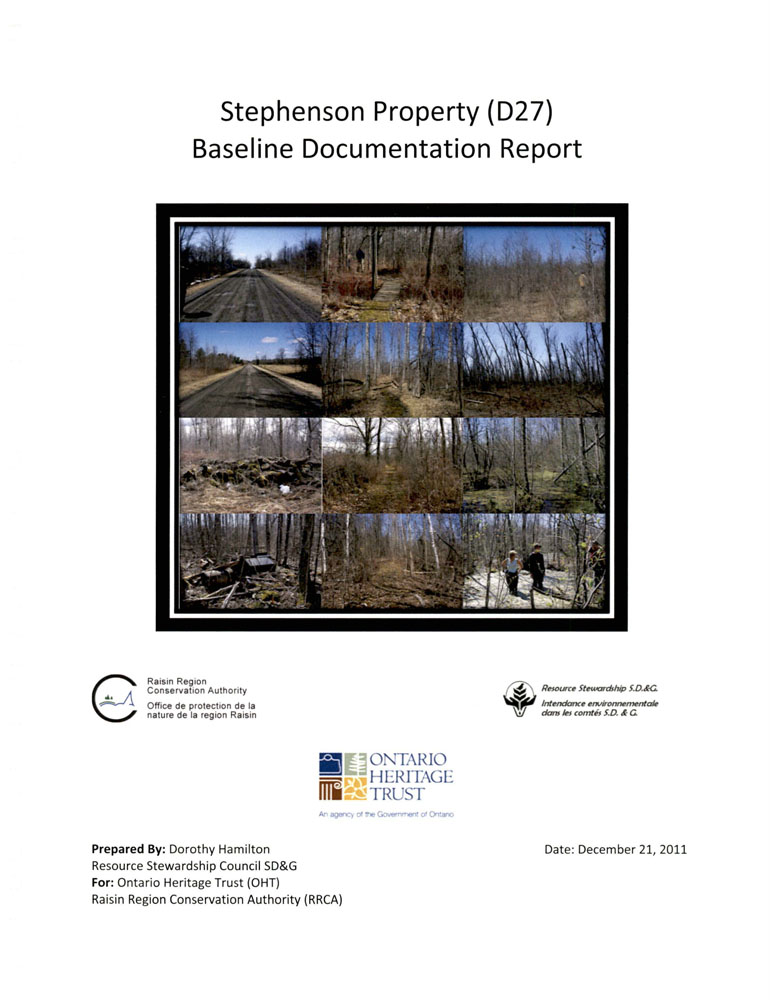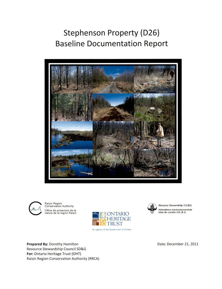 | 0267 | Stephenson PropertyBaseline Documentation (D26), Baseline Documentation Report | Dorothy Hamilton, Resource Stewardship Council SD&G | 2011 | Cerlox |