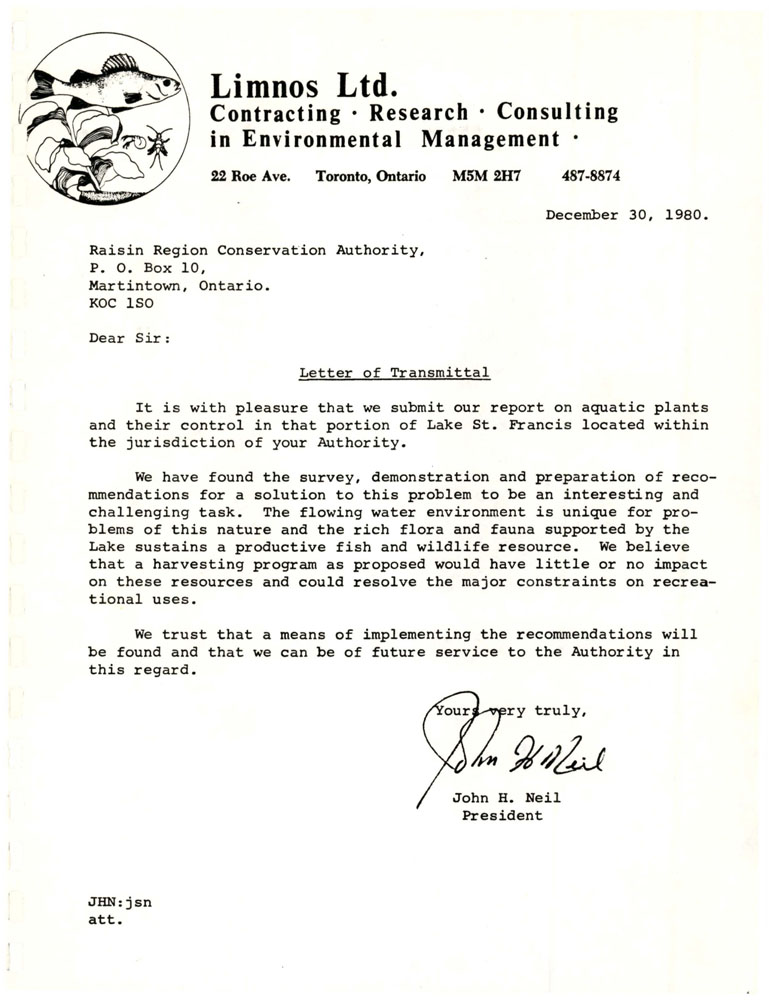 | 0270 | Aquatic Plant Survey, Harvesting Demonstration and Proposed Management ProgramLake St. Francis, Report to Raisin Region Conservation Authority | John H. Neil, Limnos Ltd. | 1980 | Cerlox |