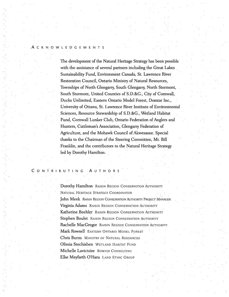 | 0285 | Natural Heritage Strategy for the Raisin Region Conservation Authority | The Land Ethic Group | 2005 | Paperclip |