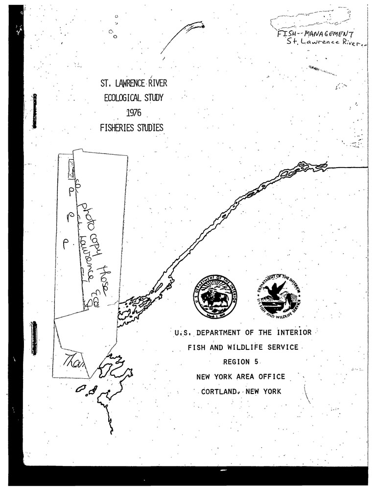 | 0291 | St. Lawrence Ecological Study1976 Fisheries Studies | U.S Department of the Interior Fish and Wildlife Service | 1976 | Stapled |