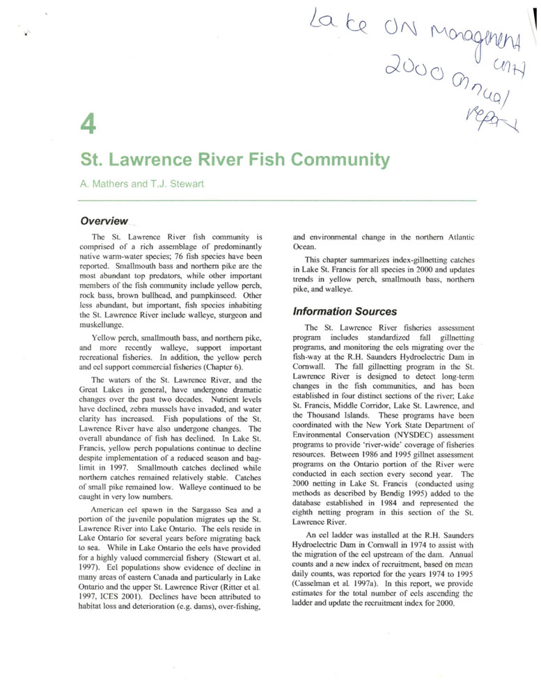 | 0292 | St. Lawrence River Fish Community | A. Mathers, T.J Stewart | 2000 | Stapled |