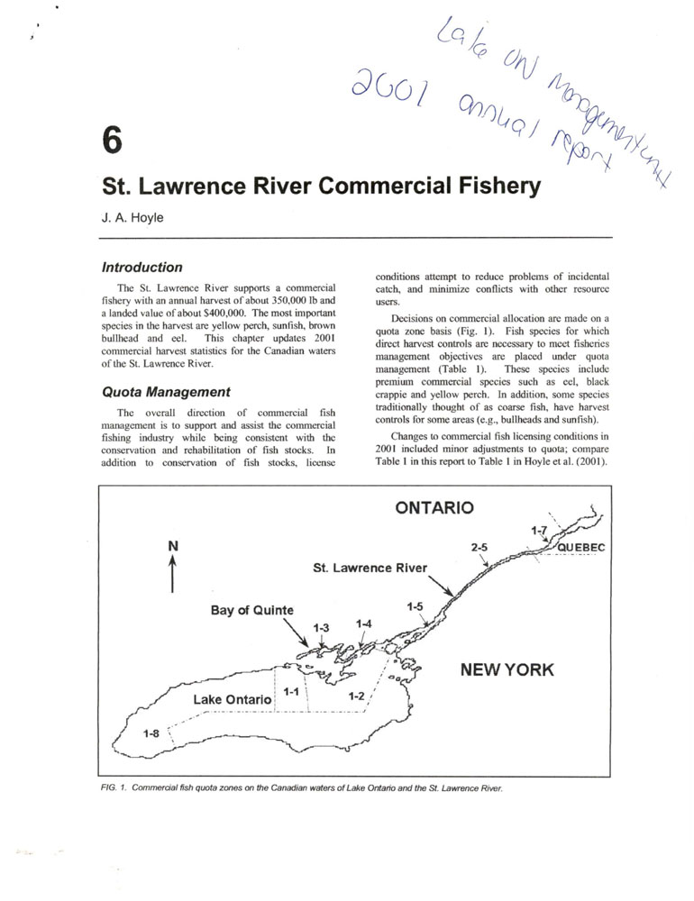 | 0293 | St. Lawrence River Commercial Fishery | J. A. Hoyle | 2001 | Stapled |