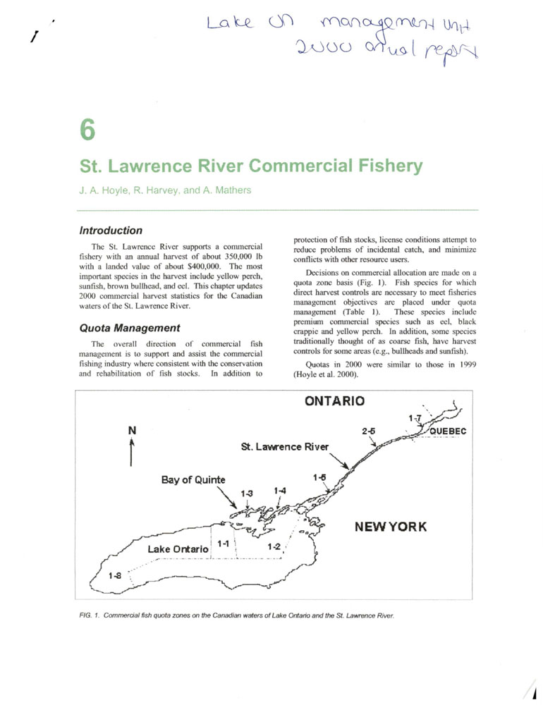 | 0294 | St. Lawrence River Commercial Fishery | J. A Hoyle, R. Harvey , A. Mathers | 2000 | Stapled |