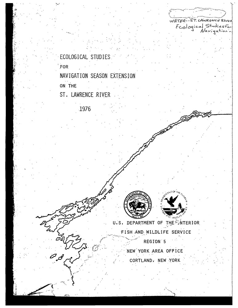 | 0295 | Ecological Studies for Navigation Season Extension on the St. Lawrence River | U.S Department of the Interior Fish and Wildlife Service | 1976 | Stapled |
