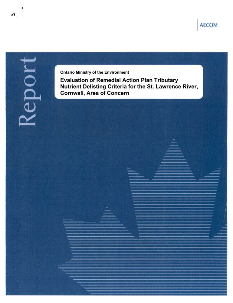 | 0299 | Evaluation of Remedial Action PlanTributary Nutrient Delisting Criteria for the St. Lawrence River, Cornwall, Area of Concern | AECOM Canada Ltd | 2009 | Stapled |
