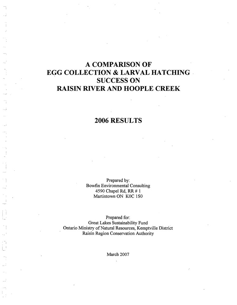 | 0303 | A Comparison of Egg Collection & Larval Hatching SuccessOn Raisin River and Hoople Creek, 2006 Results | Bowfin Environmental Consulting | 2006 | Cerlox |