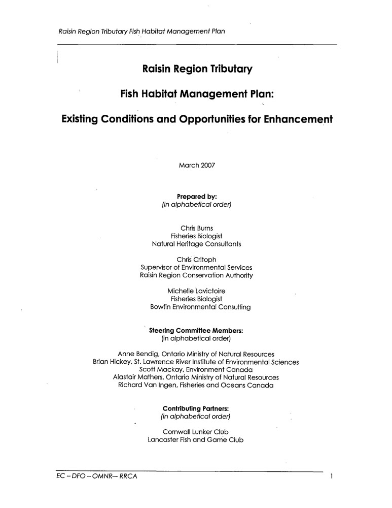 | 0307 | Fish Habitat Management Plan:Existing Conditions and Opportunities for Enhancement | Chris Burns, Chris Critoph, Michelle Lavictoire | 2007 | Paper clip |