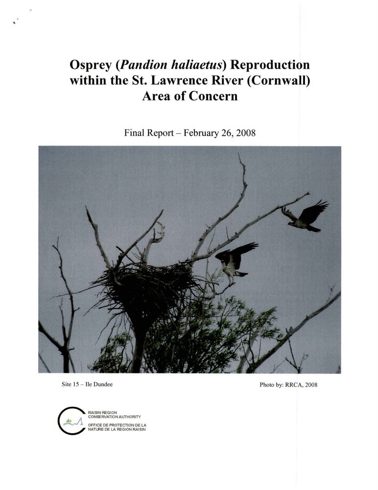 | 0327 | Osprey (Pandion haliaetus) Reproduction within the St. Lawrence River(Cornwall) Area of Concern, Final Report | Brendan Jacobs | 2008 | Paper clip |