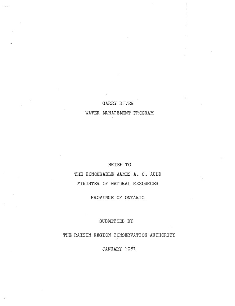 | 0335 | Garry River Water Management Program | RRCA | 1981 | Cerlox. Attachments: 4 Maps |