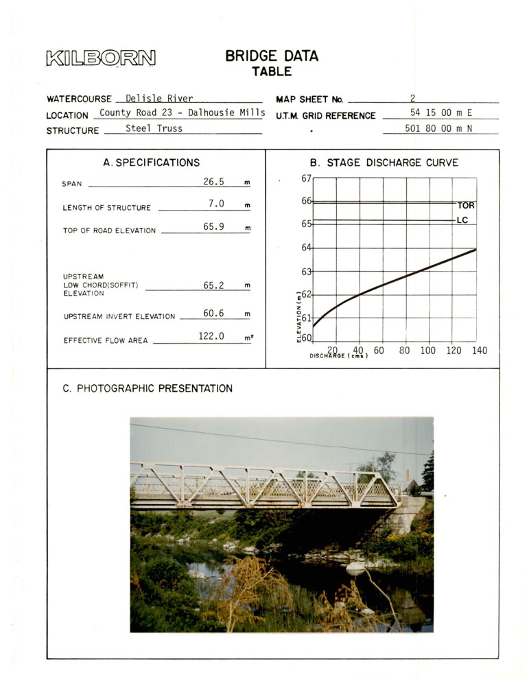 | 0343 | Bridge Data Tables and Summary of Regulatory Backwater Simualtions | Delisle River, Marcoux Drain | 1983 | Cerlox |