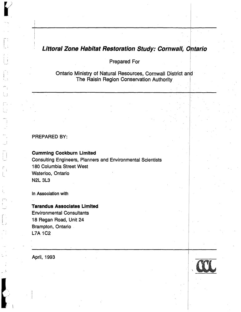 | 0344 | Littoral Zone Habitat Restoration Study: Cornwall, Ontario | Cumming Cockburn | 1983 | Cerlox |