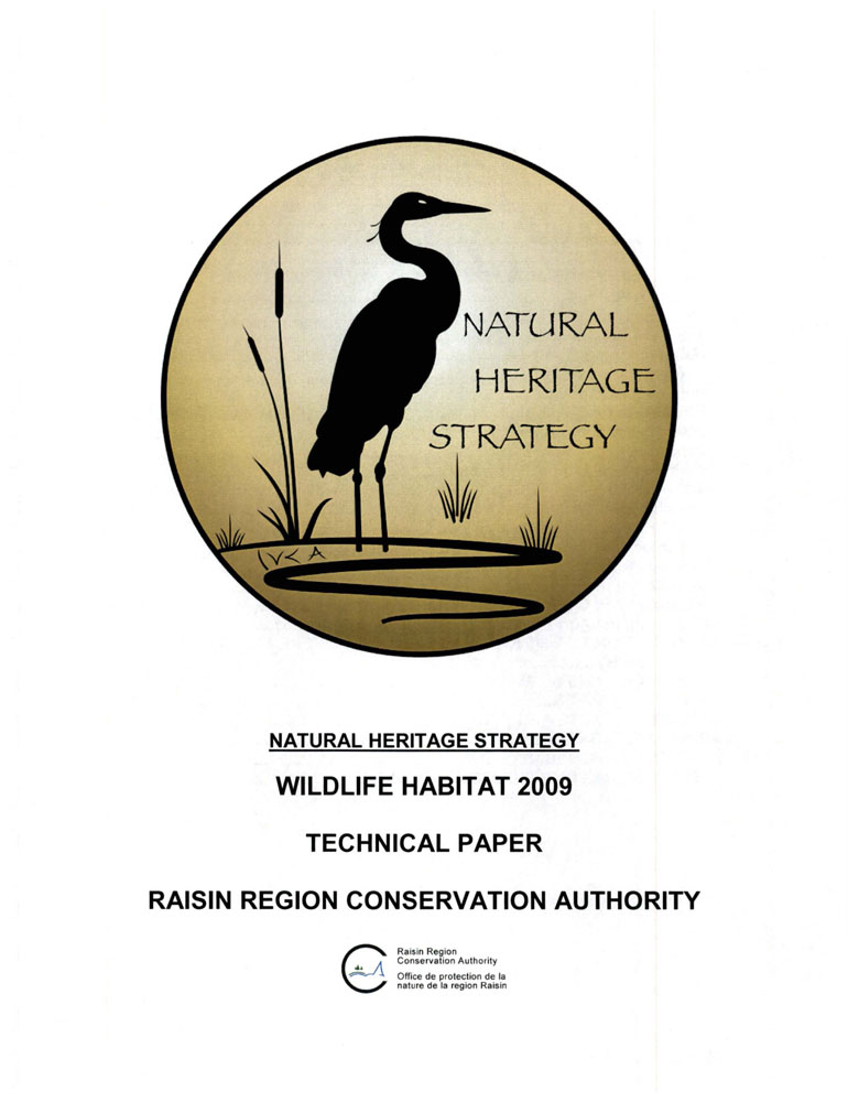 | 0346 | Natural Heritage StrategyWildlife Habitat 2009, Technical Paper, RRCA | Dorothy Hamilton & Contributing Authors | 2009 | Cerlox |