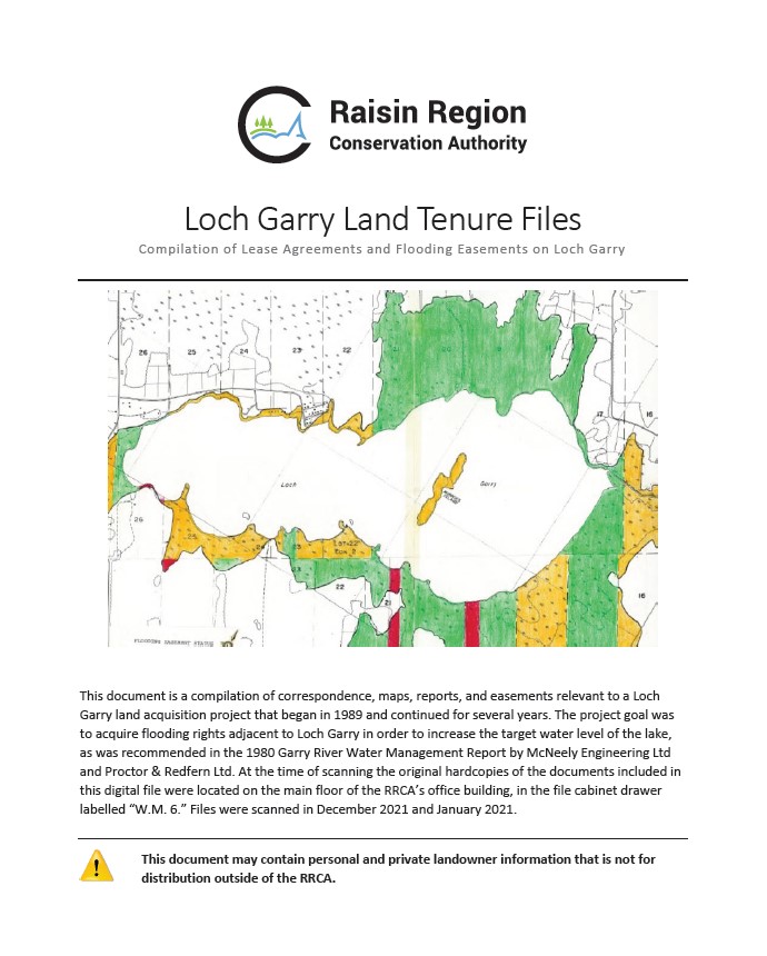 | 0351 | Loch Garry Land Tenure FilesCompilation of Lease Agreements and Flooding Easements on Loch Garry. 1712 pages, 155MB | RRCA / Ross and Duncan | 1993 | Scanned Paper Files |